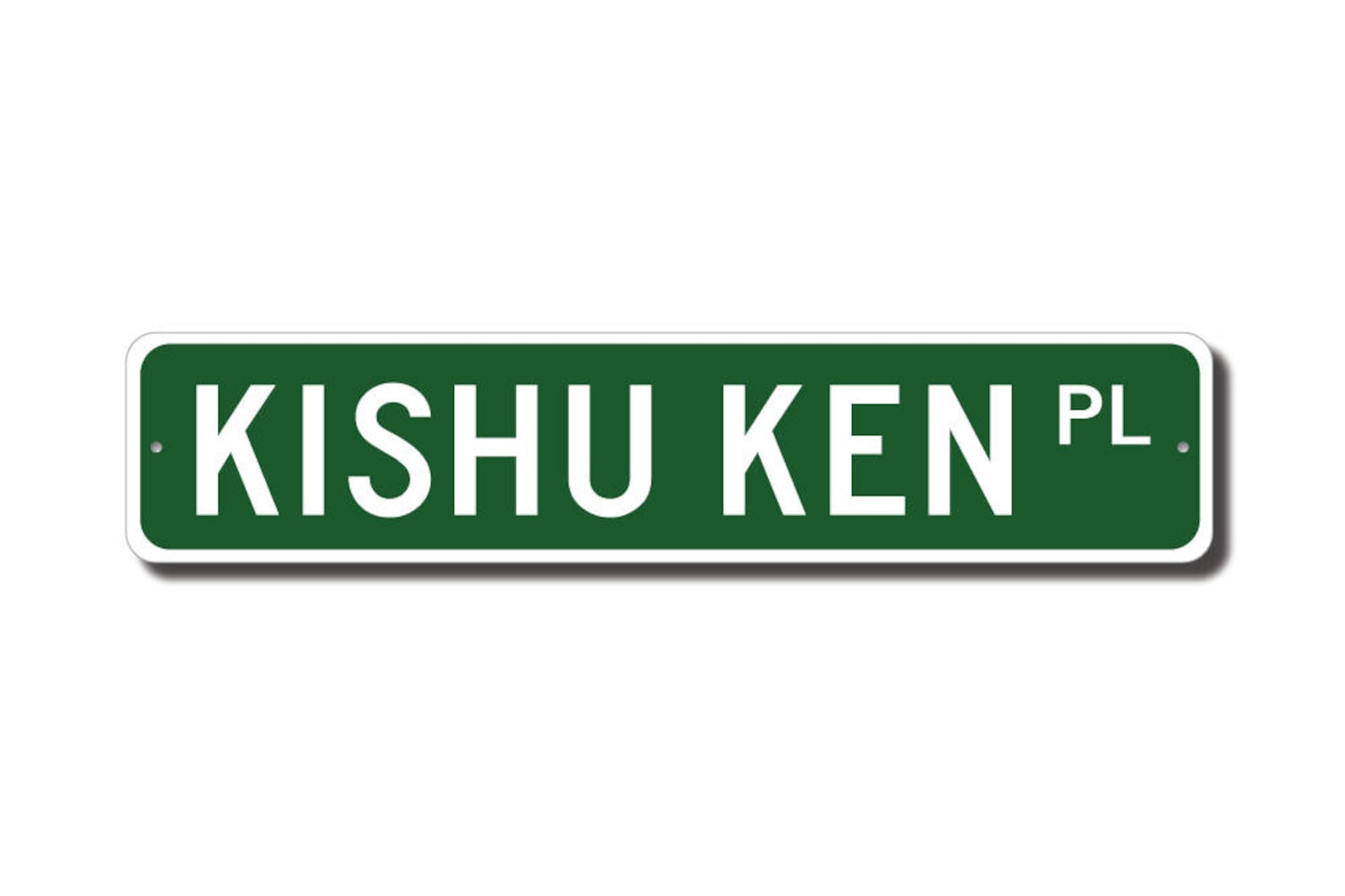 Kishu Ken lovers check out this awesome street sign! This will make the perfect piece for any Kishu Ken lover or Kishu Ken cave. Made of premium aluminum it will stand the test of time. This sign will look great in any room, garage, barn or office! Get this sign for your favorite friend that loves a Kishu Ken !