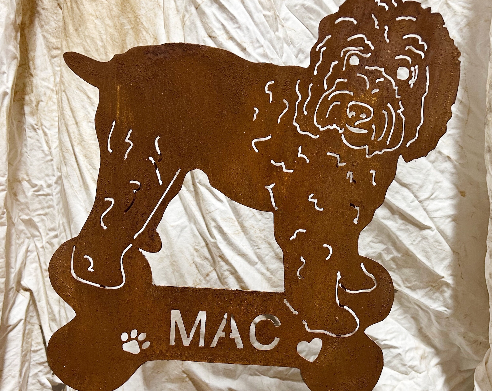 Cute Dog personalized metal yard art sign, made from heavy, durable 14 gauge steel. With high-quality workmanship. Add your custom text, dog name or saying on the sign. Dog mom, dog dad.
