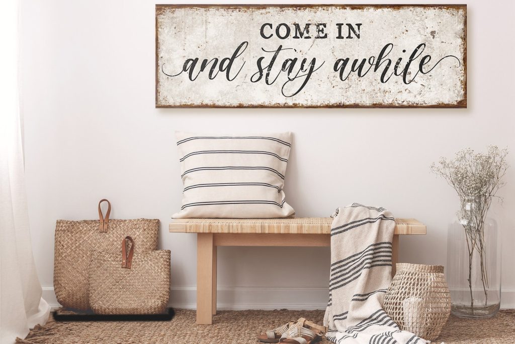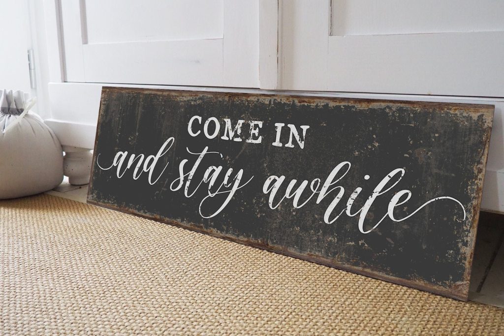 Come In AndtLarge OutdoortWall Art EntrywaytDecor Metal FronttPorch Signs WelcometSign Front DoortModern FarmhousetDoor HangertWhite Black WoodtCanvas Family RustictVintage Chic ShabbytPrimitive FrancetStay Awhile French