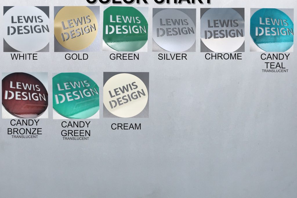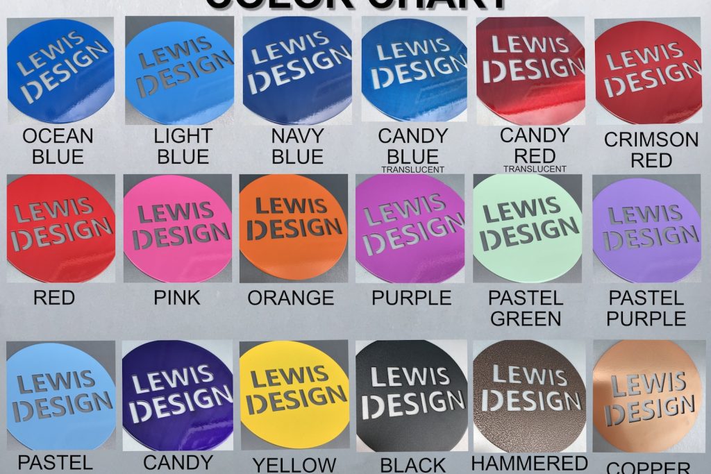 Candy colors and transparent colors are fully transparent. Any flaws that exist in the metal underneath the color will show through the color and be visible. This includes scratches, blemishes, cut marks, burns from the cutting process, etc.