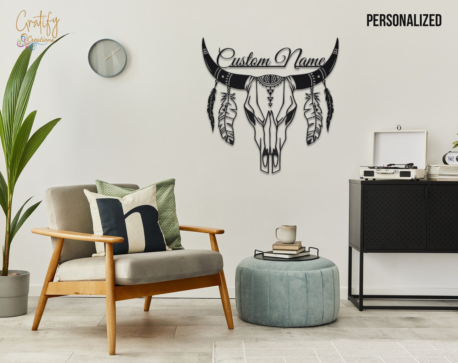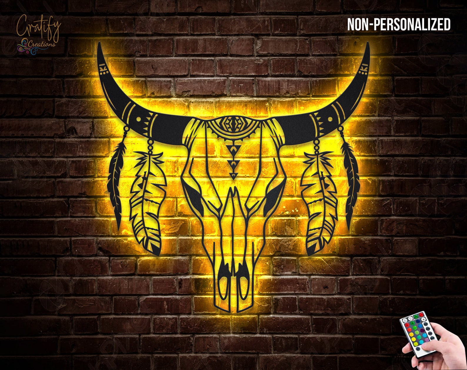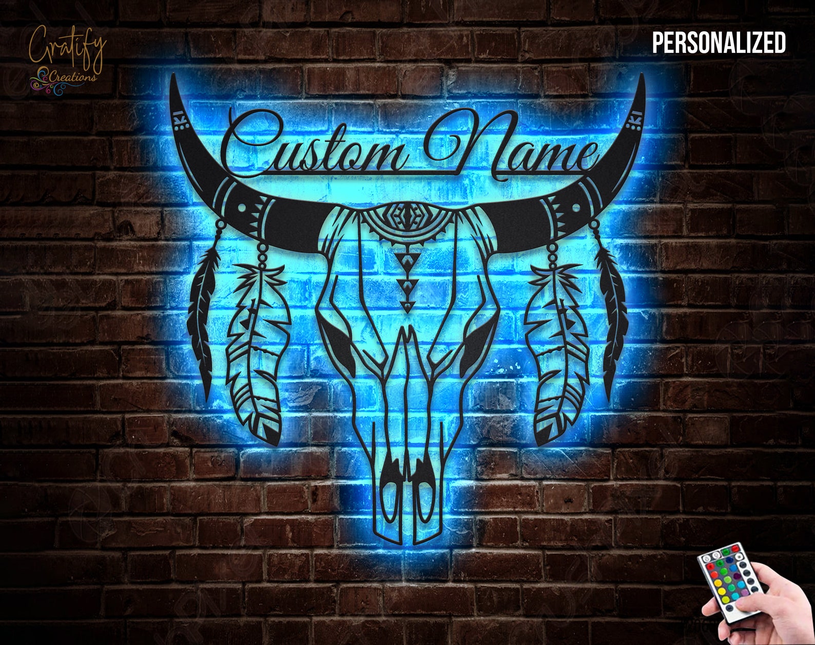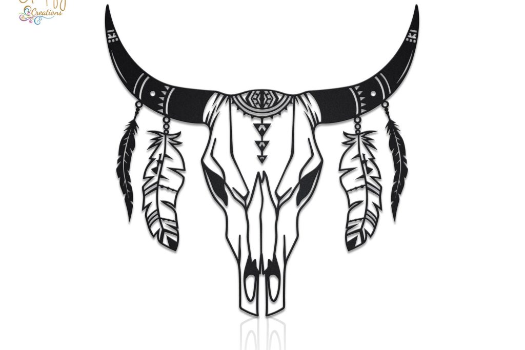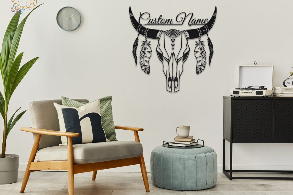 LED Cow Skull Metal Art – Boho Floral Longhorn Decor