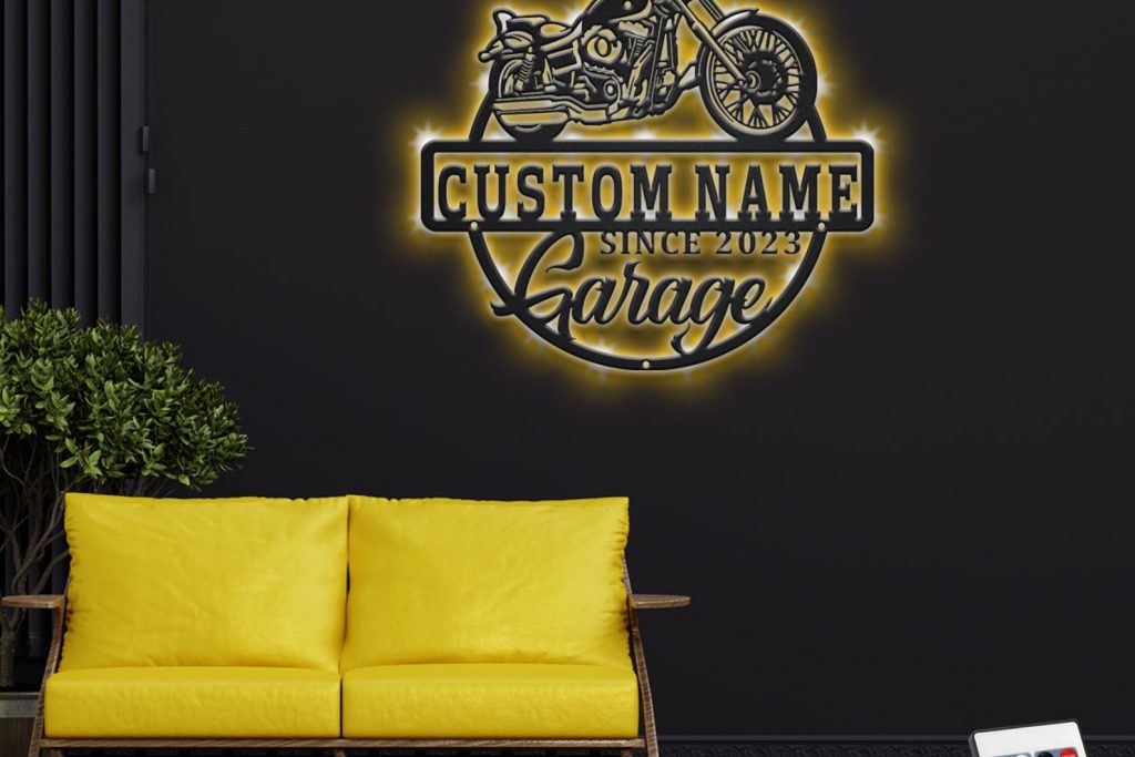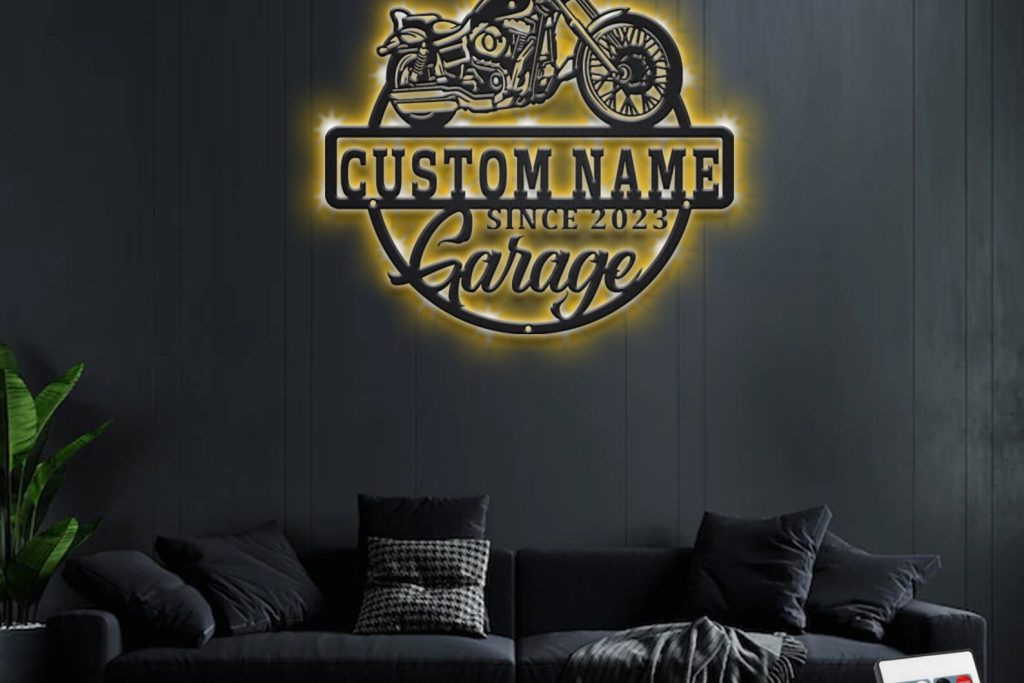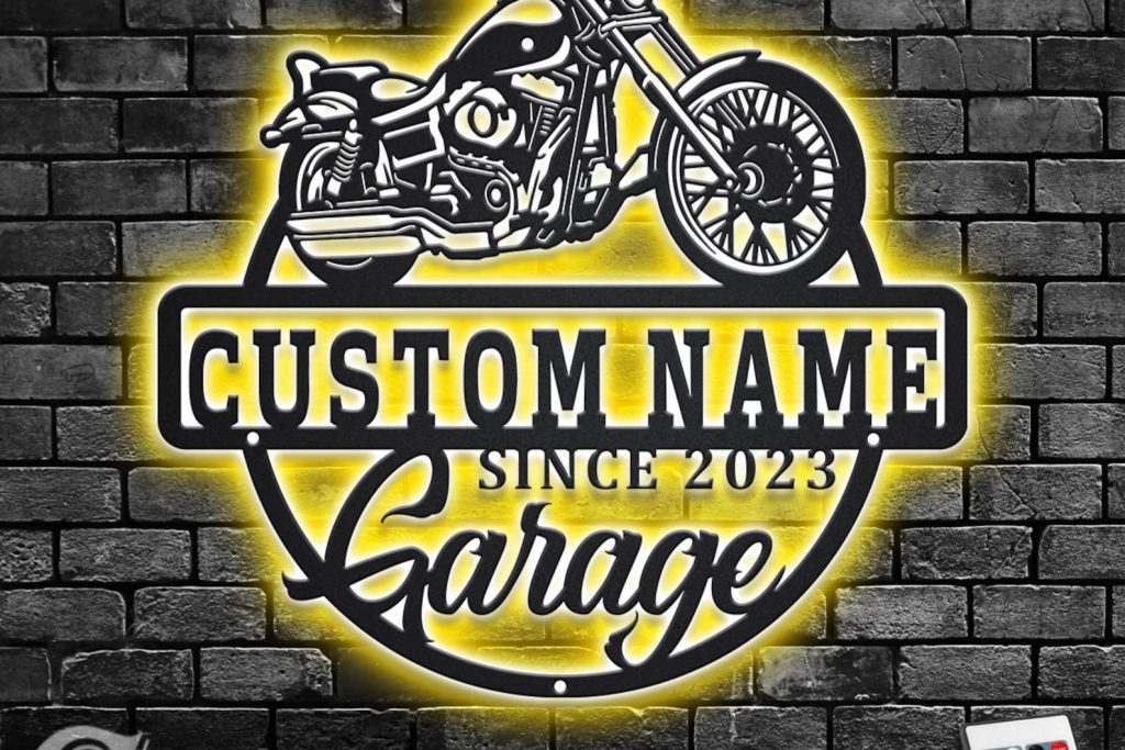 LED Motorcycle Garage Metal Sign for Biker Decor