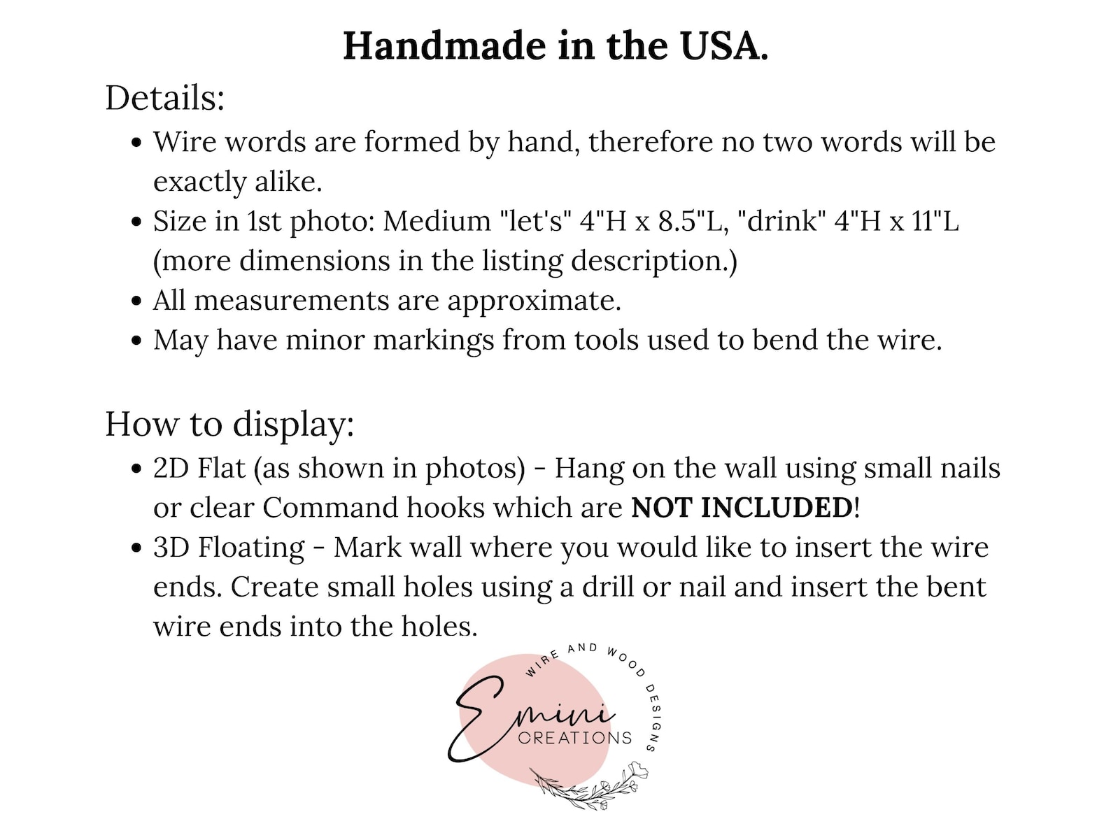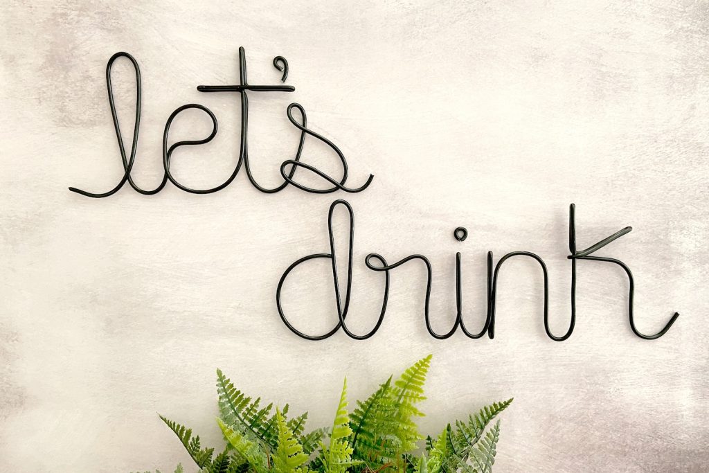 Let9;s Drink has a fun and modern vibe for the cocktails area of your home whether it9;s the kitchen, basement bar, man cave, garage or patio This wire word art is versatile and brings a cool vibe to the room. You can even display this sign at a wedding, shower, or party for a unique decor addition.