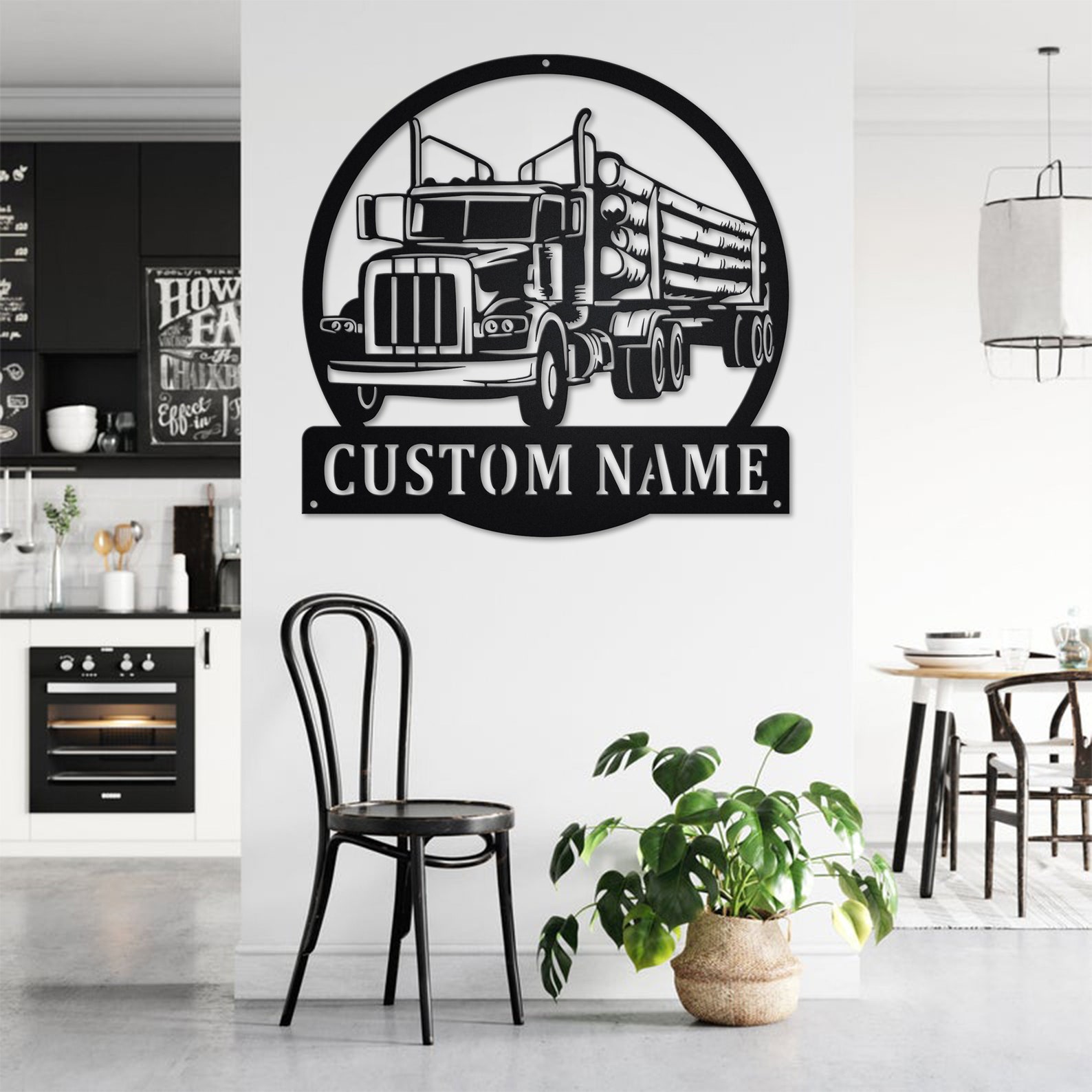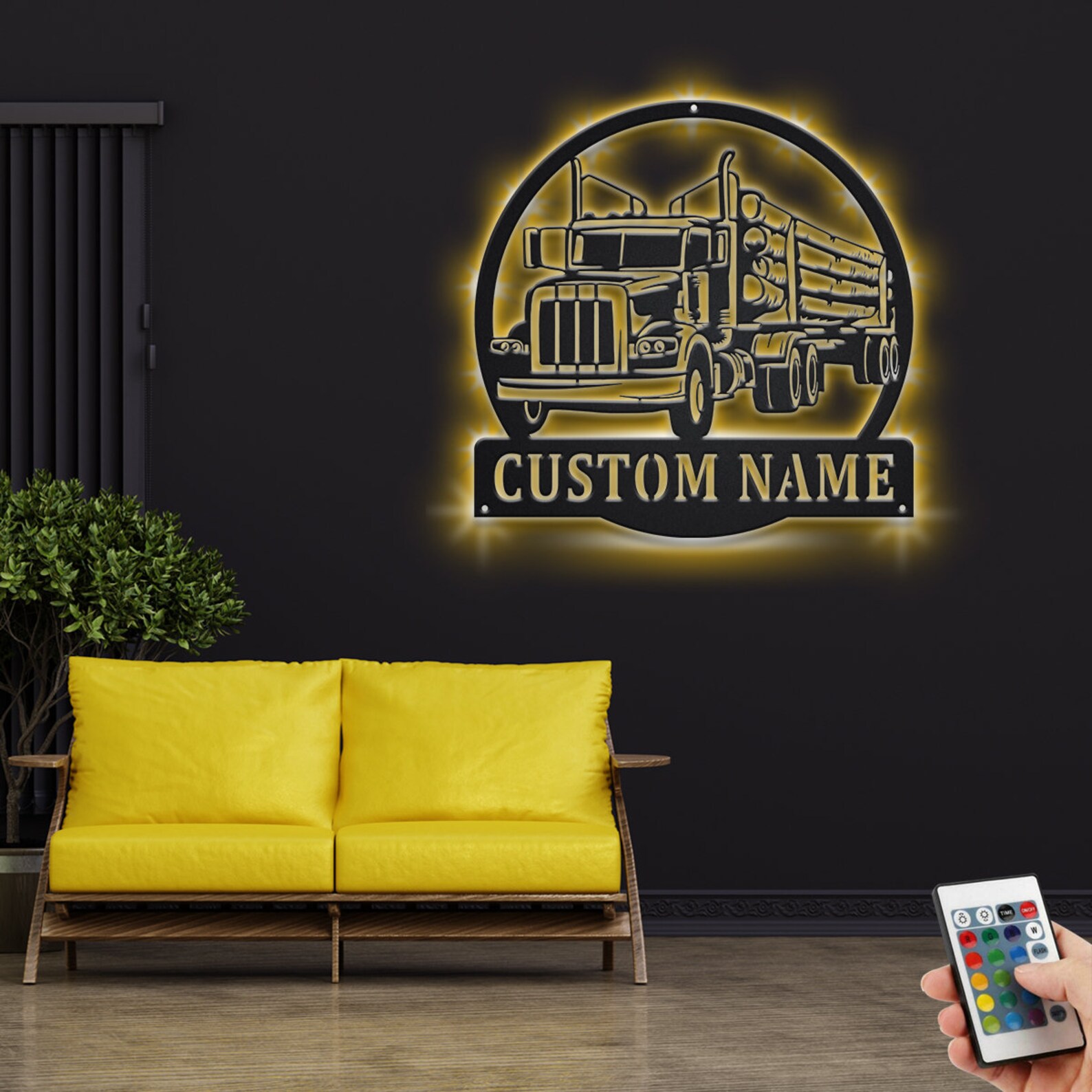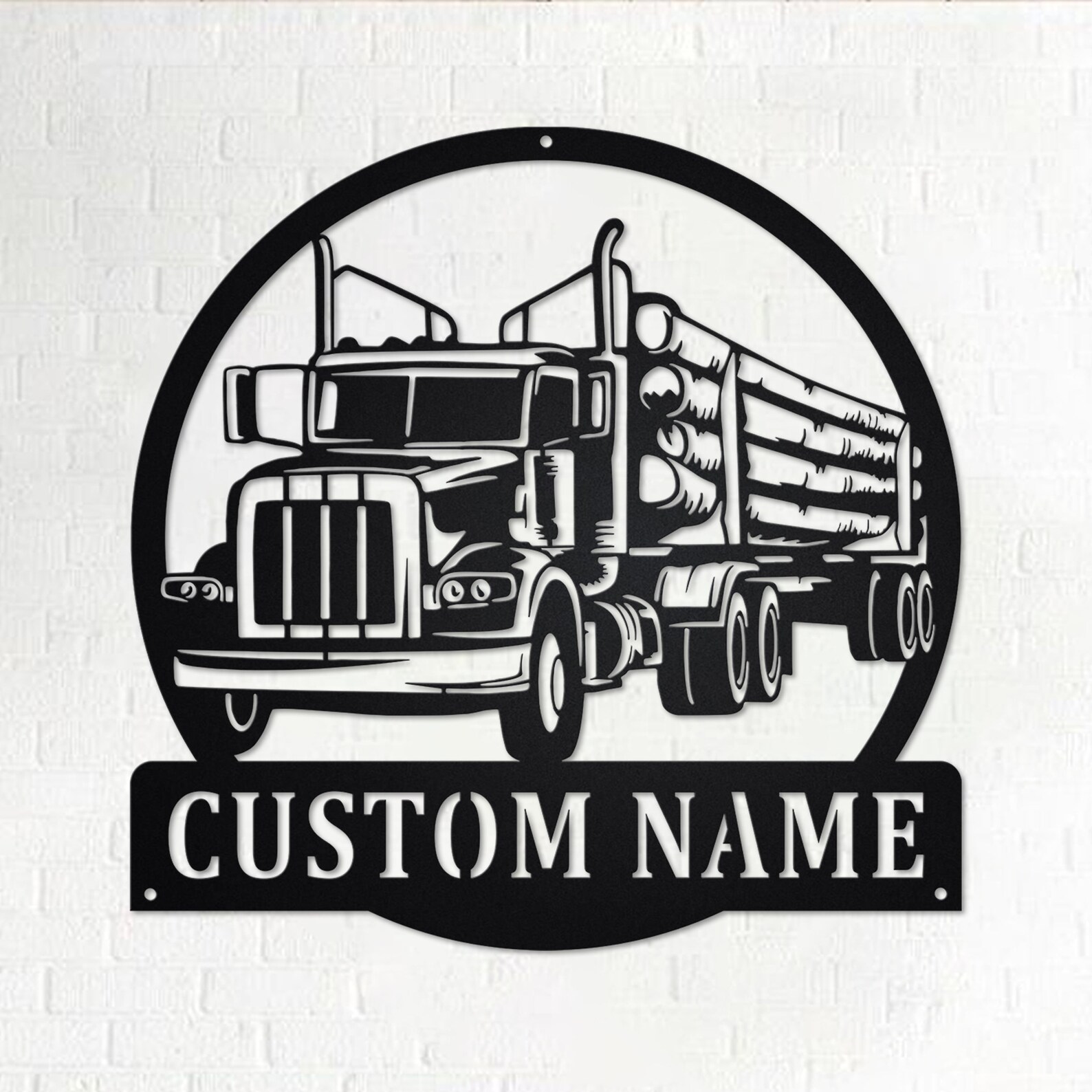 Log Truck Metal Art with LED, Personalized Sign