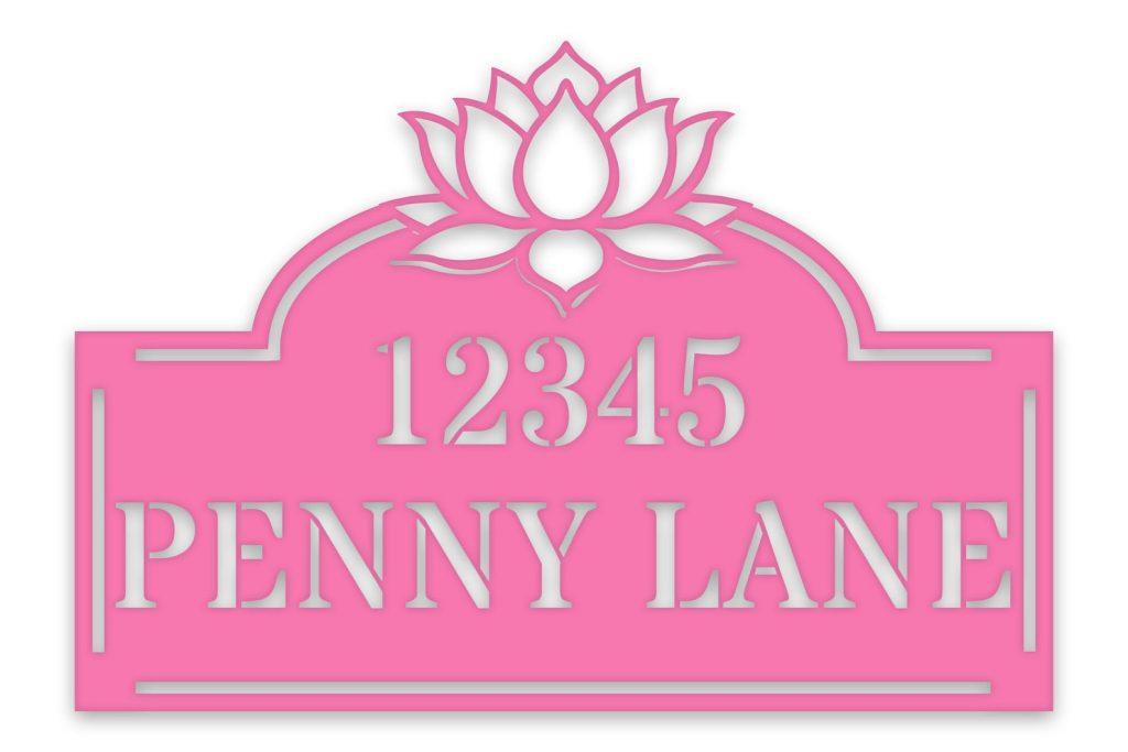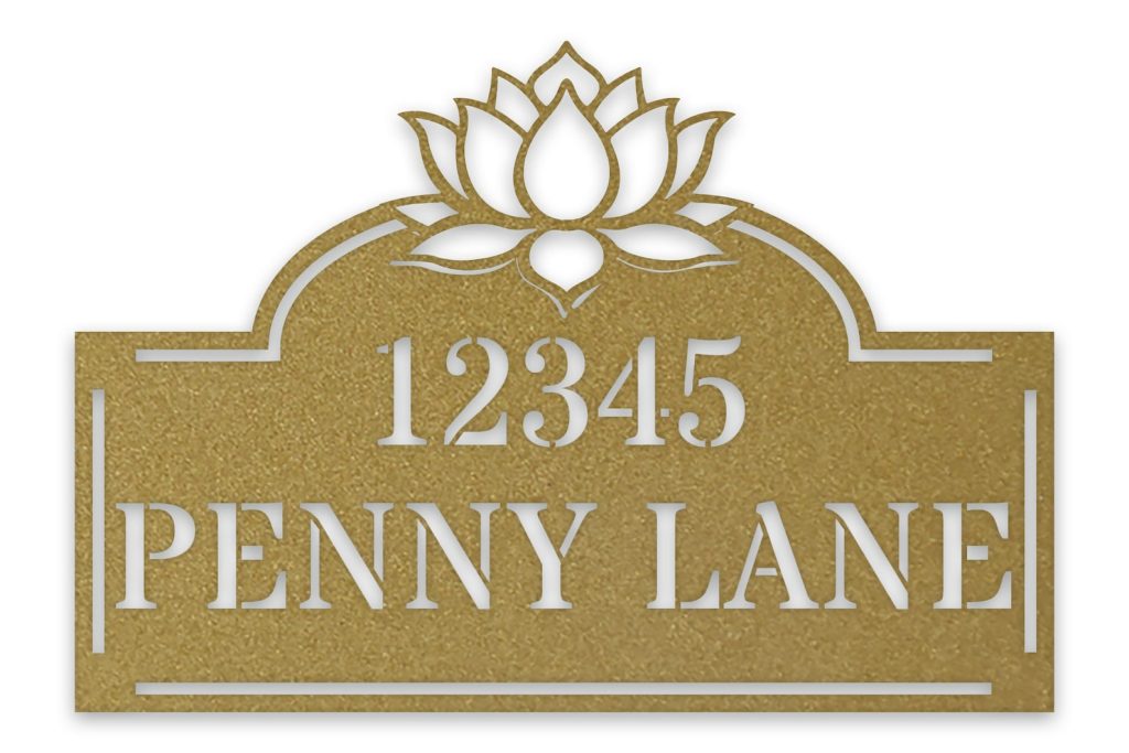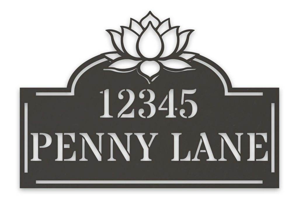 Make your home standout with this personalized Lotus Address Plate: a stunning metal address sign, powder coated for a beautiful, long-lasting finish, including your house number & street name. Ideal for your doorway or a garden wall, it provides a one-of-a-kind accent to your home. Get it now – don9;t wait!