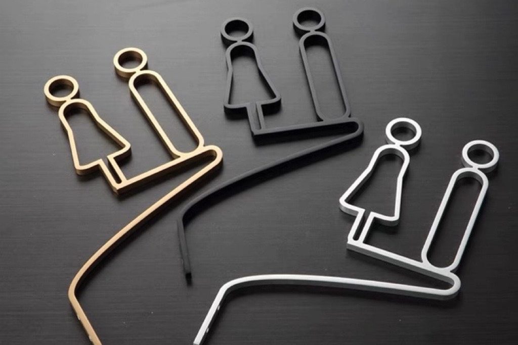 Luxury Metal Side Mount Washroom Sign, Bathroom Sign, Restroom Sign, Toilet Sign