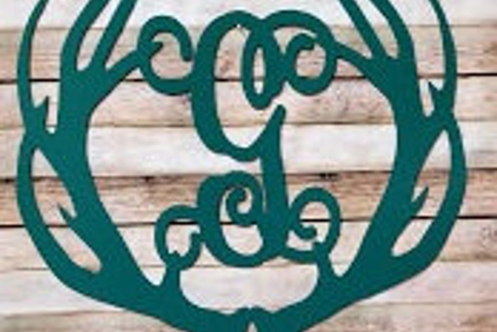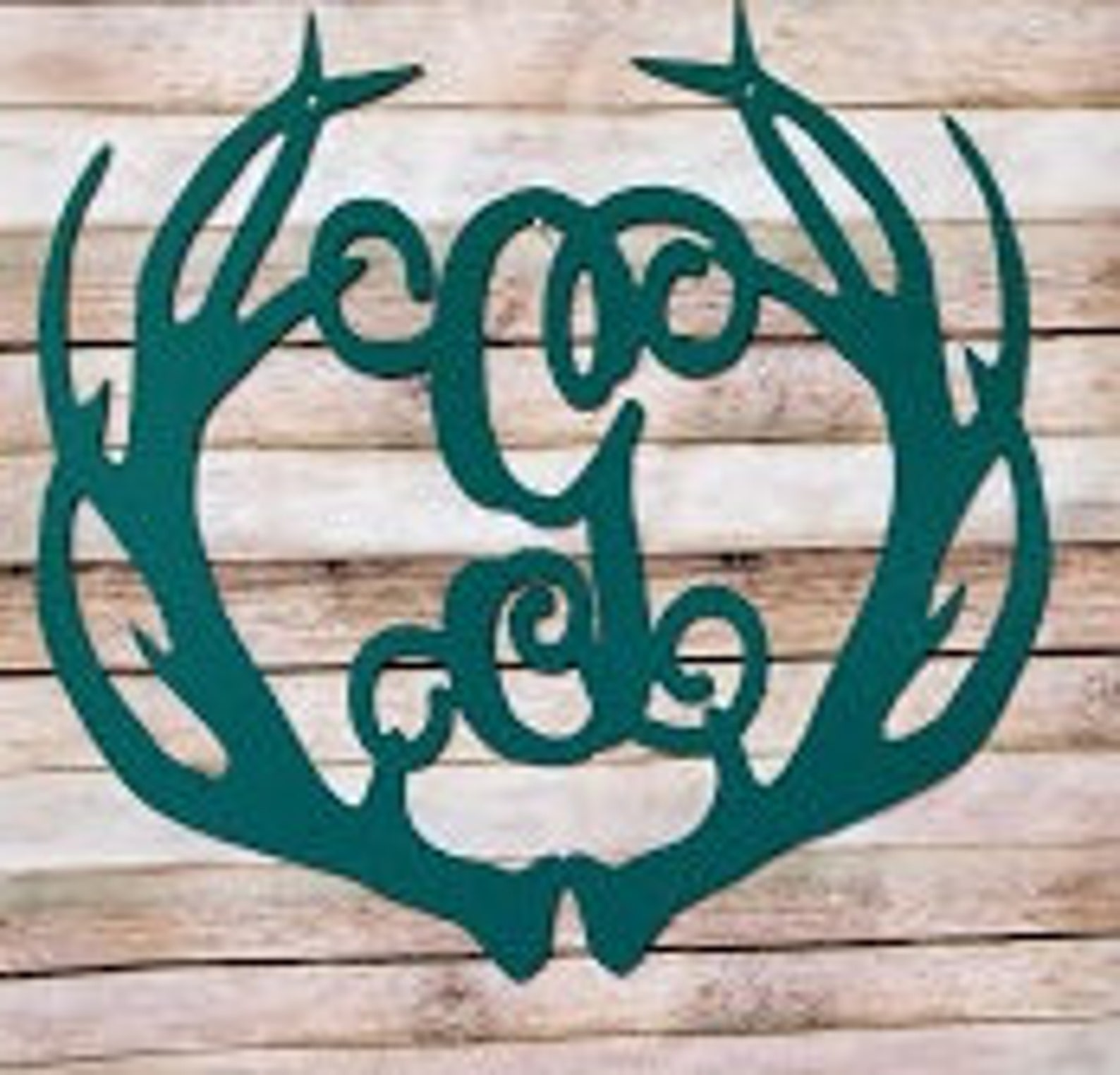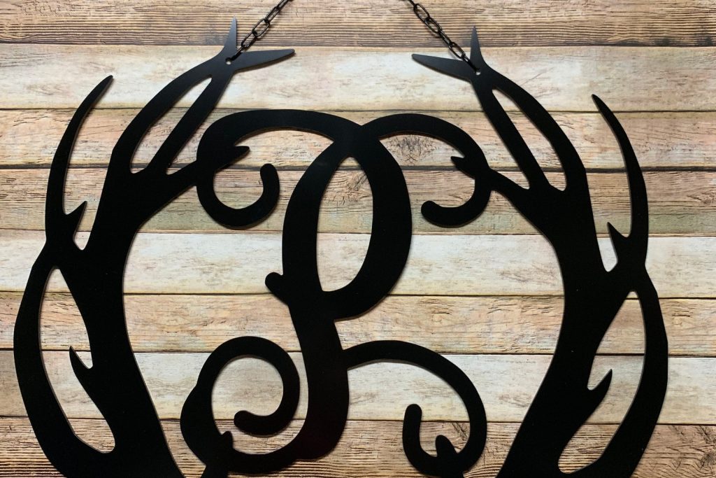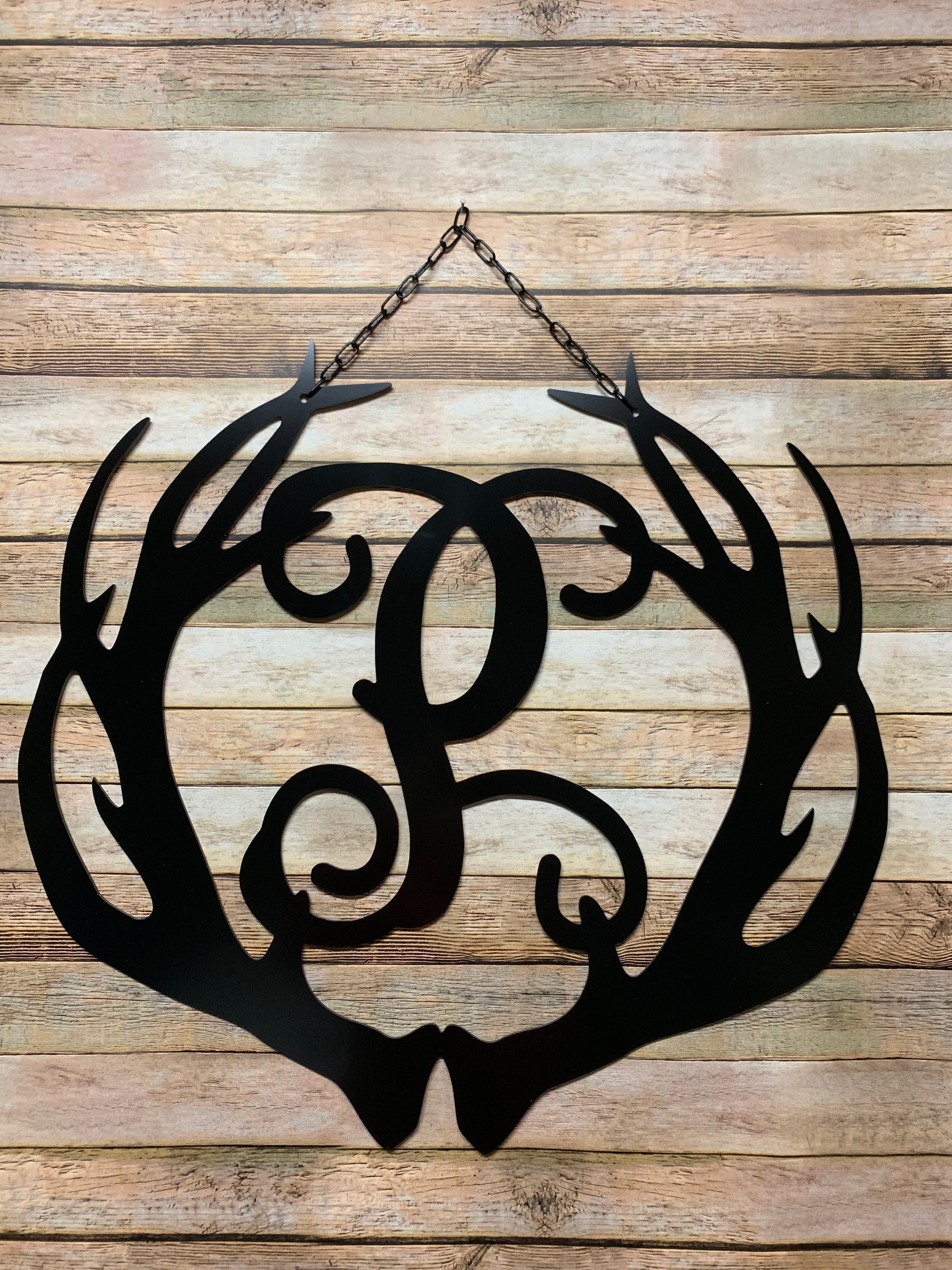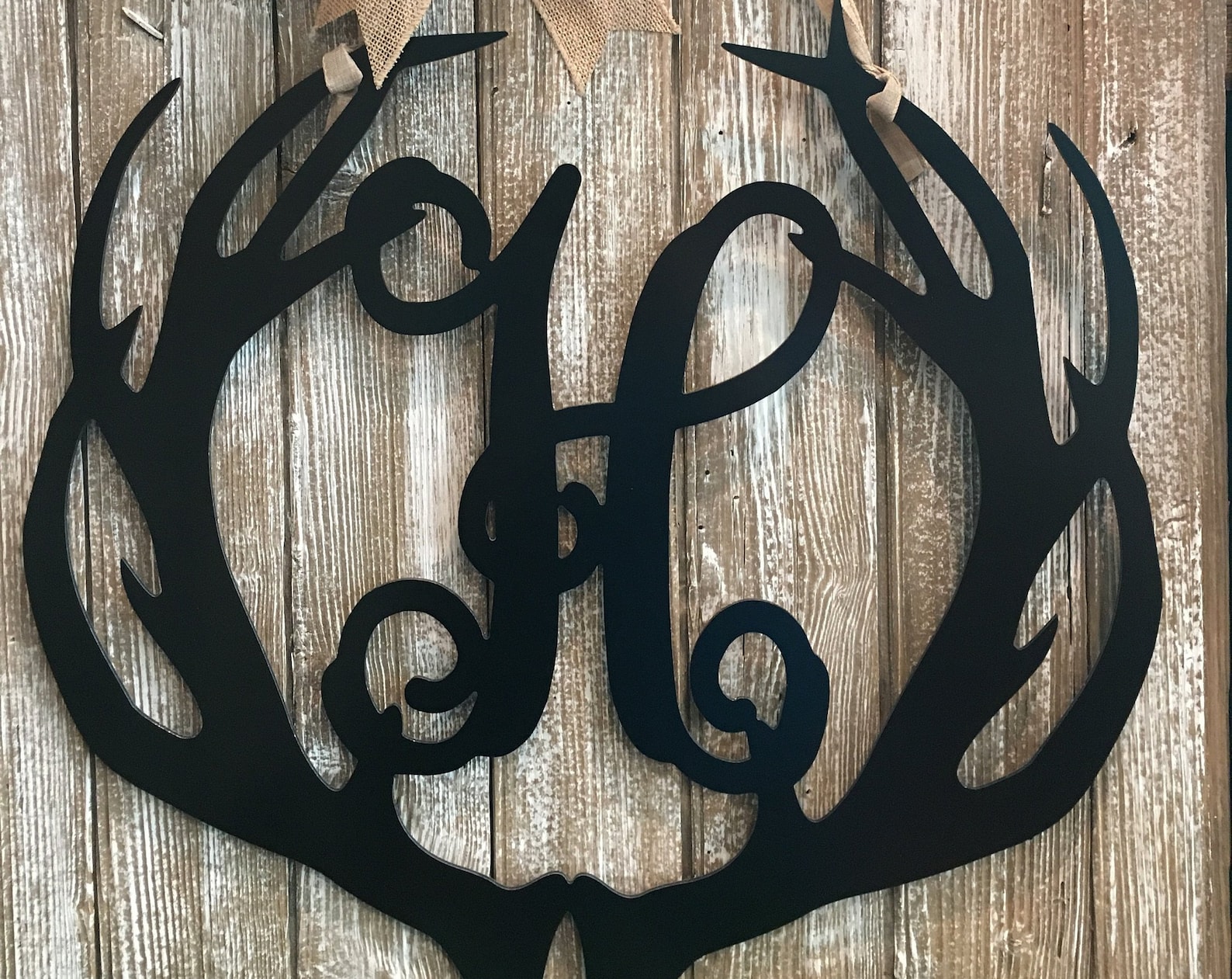 This Antler Monogram Sign can be customized with vine script font or block font, with a variety of color options and mounting options to help you display inside or outside your home. Our unique metal acm material is weatherproof and will last! Read about this material below.