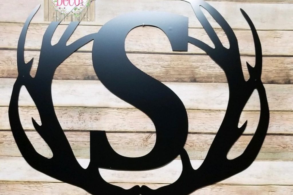 Be the first to review “Metal Antler Initial Door Hanger – Deer Man Cave Decor”