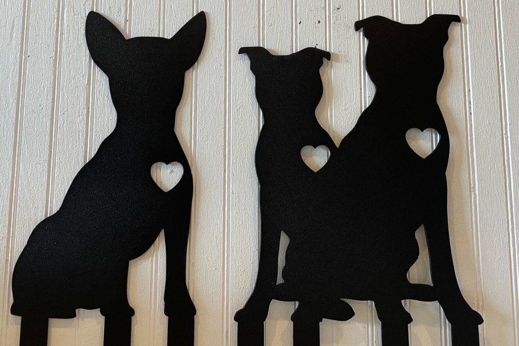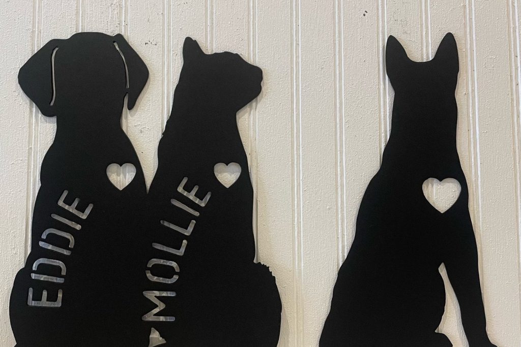 Cute Dog personalized metal yard art sign, made from heavy, durable 16 gauge steel. With high-quality workmanship. Add your custom text, dog or name on the sign.
