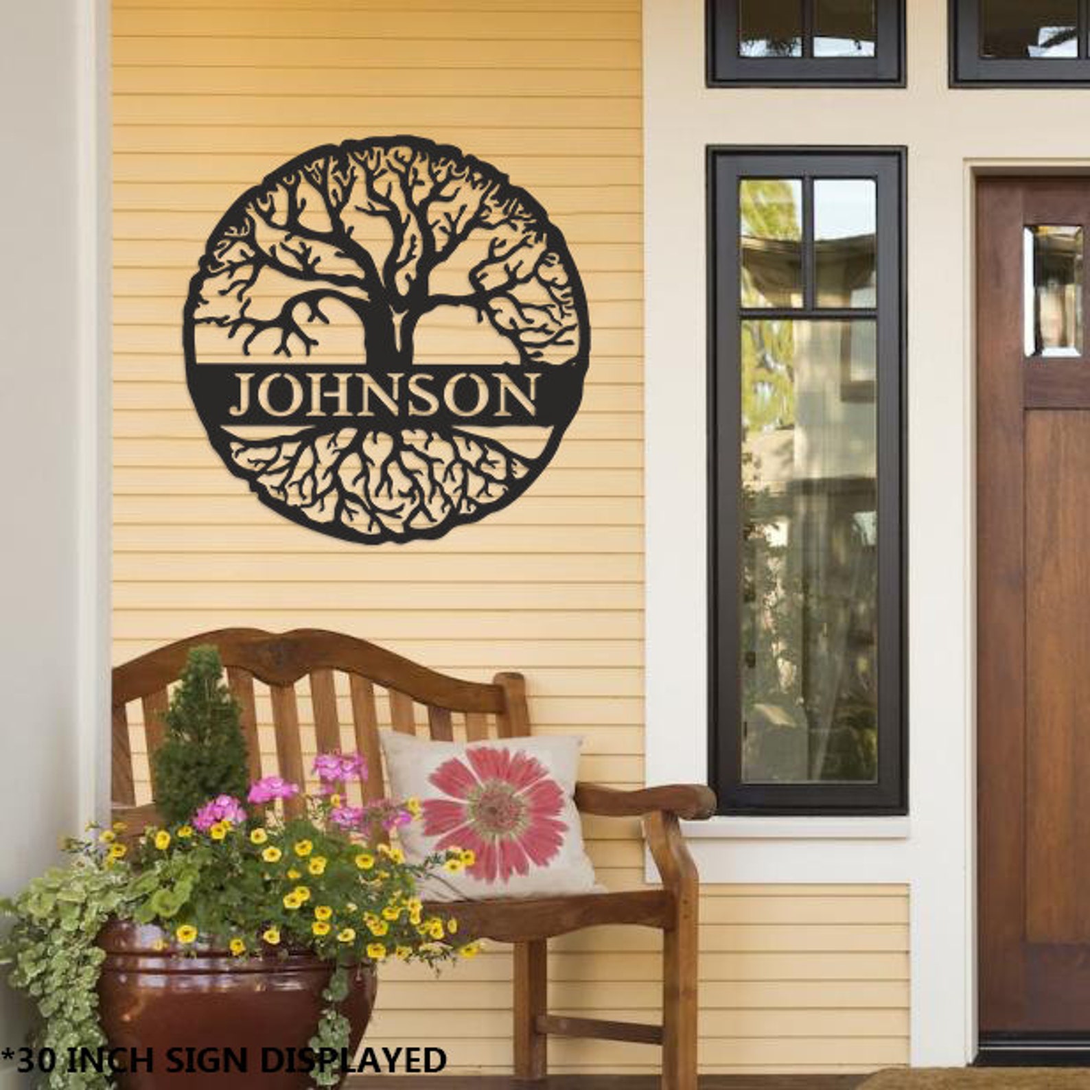 This hand crafted Family Tree Monogram comes in 3 sizes, ranging from 20" x 20" to 30"". It is Laser Cut from Premium Pickled & Oiled 16 gauge metal which is about the thickness of a nickel and powder coated with a low gloss mini textured exterior black finish and can be used inside or outside.Just leave us the name you want in the text section and we will take care of the rest. This is a gift that will last a lifetime! Guaranteed!