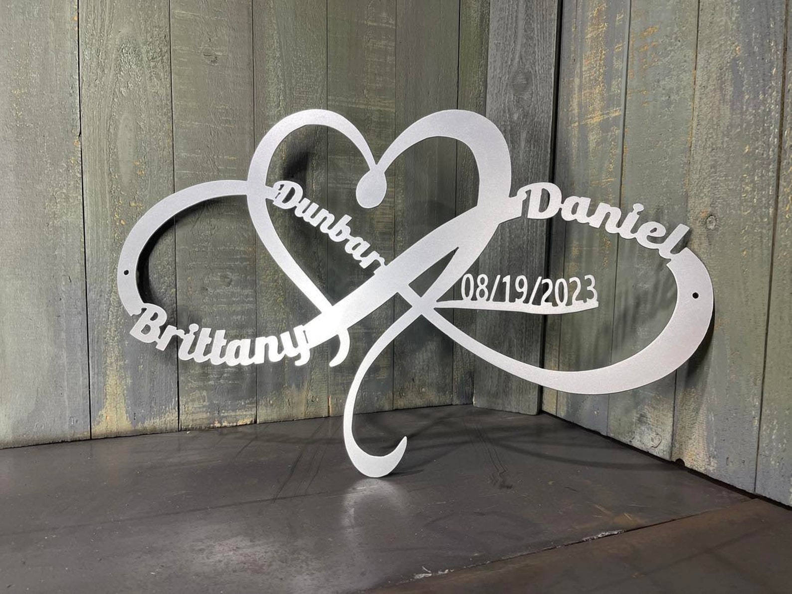 This beautiful heart and infinity sign now includes a last name! Customize it completely with you and your significant other9;s names and wedding or anniversary date! Please include your name and date choices in the personalization box when ordering.