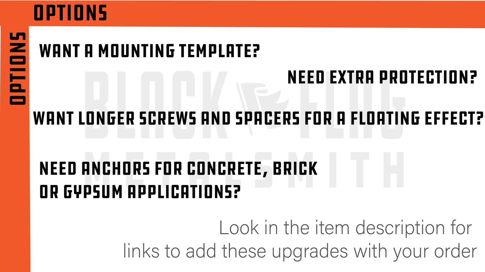 For an additional cost we can weld studs to the back for floating house numbers. Inquire for pricing.