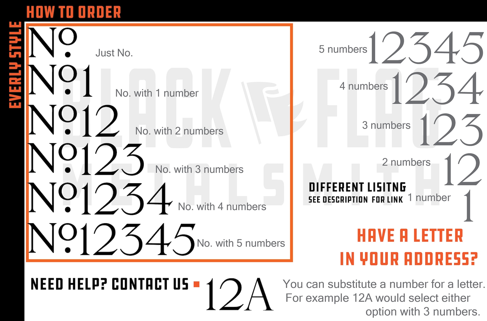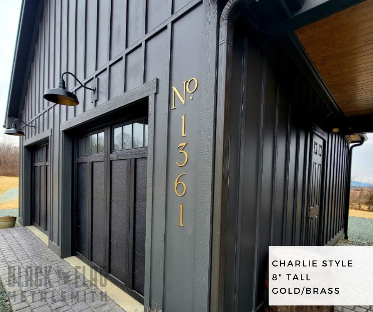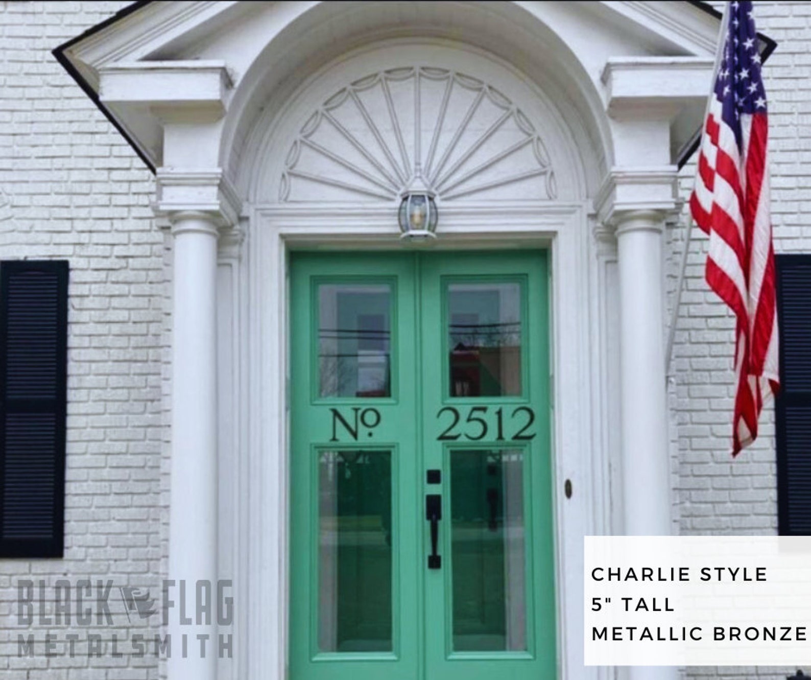 These numbers come with our premium exterior grade powder coating. Our standard colors are Satin Black, Satin Copper, Gold|Brass or Metallic Bronze.
