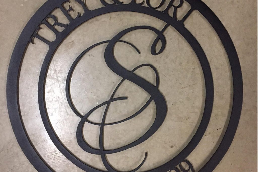 Metal Monogram Sign, Laser Cut, Black Textured Finish
