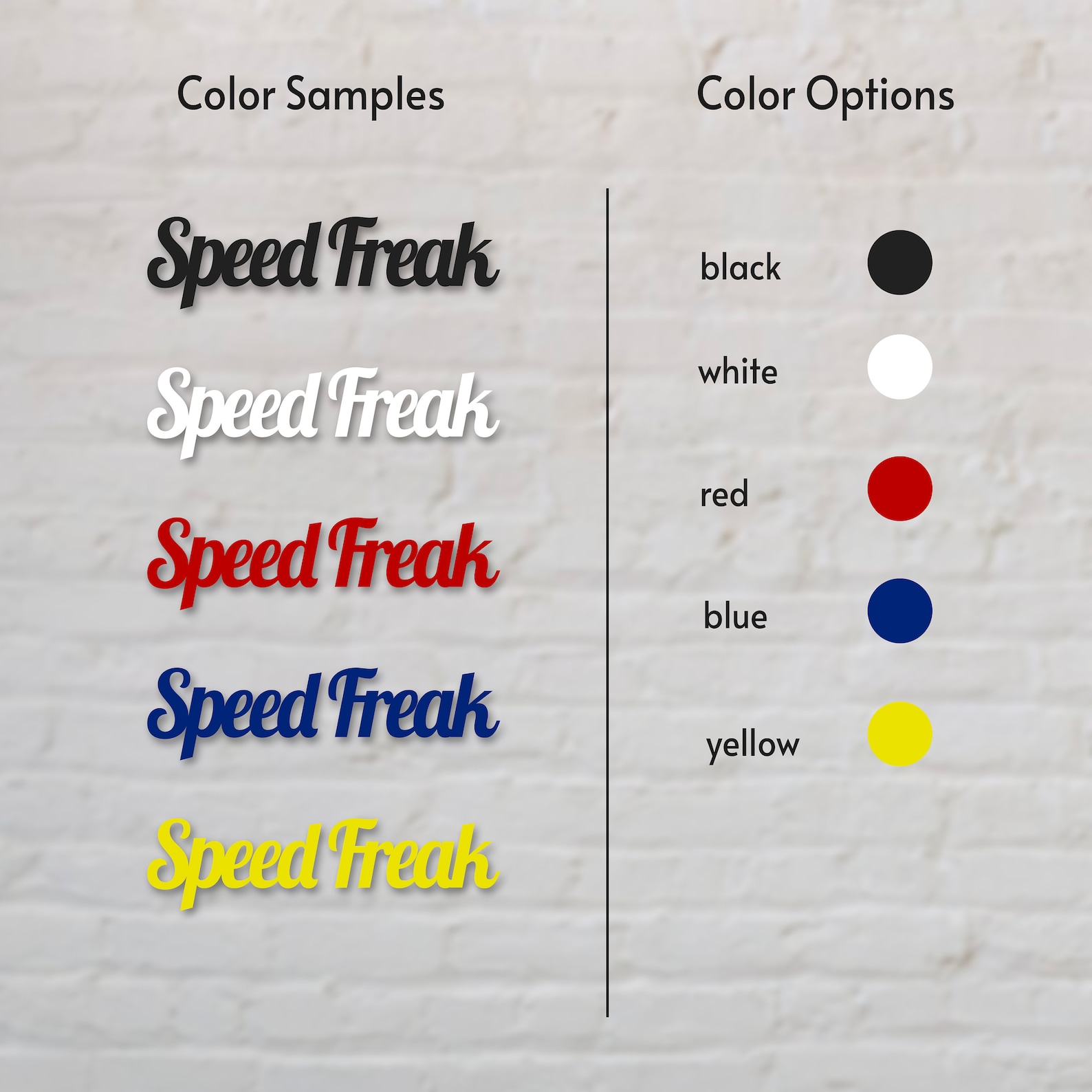 Looking for a unique and edgy addition to your home decor? Check out our Metal Speed Freak Sign! This contemporary wall hanging is made of laser-cut metal and comes in four different sizes (16in, 28in, 39in, and 55in) and five different colors (black, white, red, blue, and yellow). It9;s perfect for adding a personal touch to your garage, man cave, game room, bar, patio, or any indoor or outdoor space. Plus, it makes a great gift for anyone who loves speed and racing. And with free shipping and on sale now, there9;s no better time to add this Speed Freak Sign to your collection.