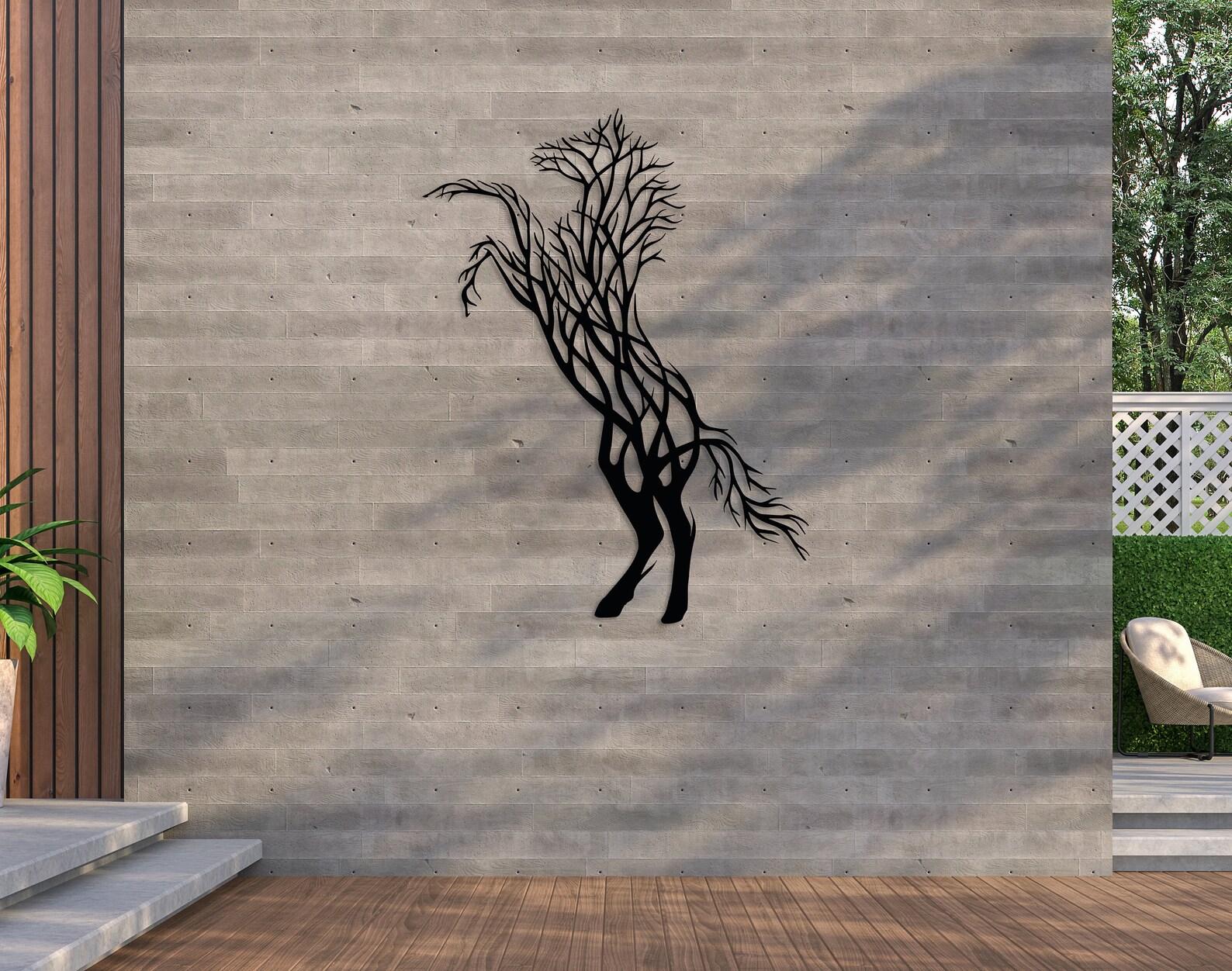 Metal Tree Horse Wall Decor, Modern Large Horse Wall Art, Wildlife Lover Gift, Horse Sign, Outdoor Wall Hanging, Farmhouse Decor, Equestrian Sign