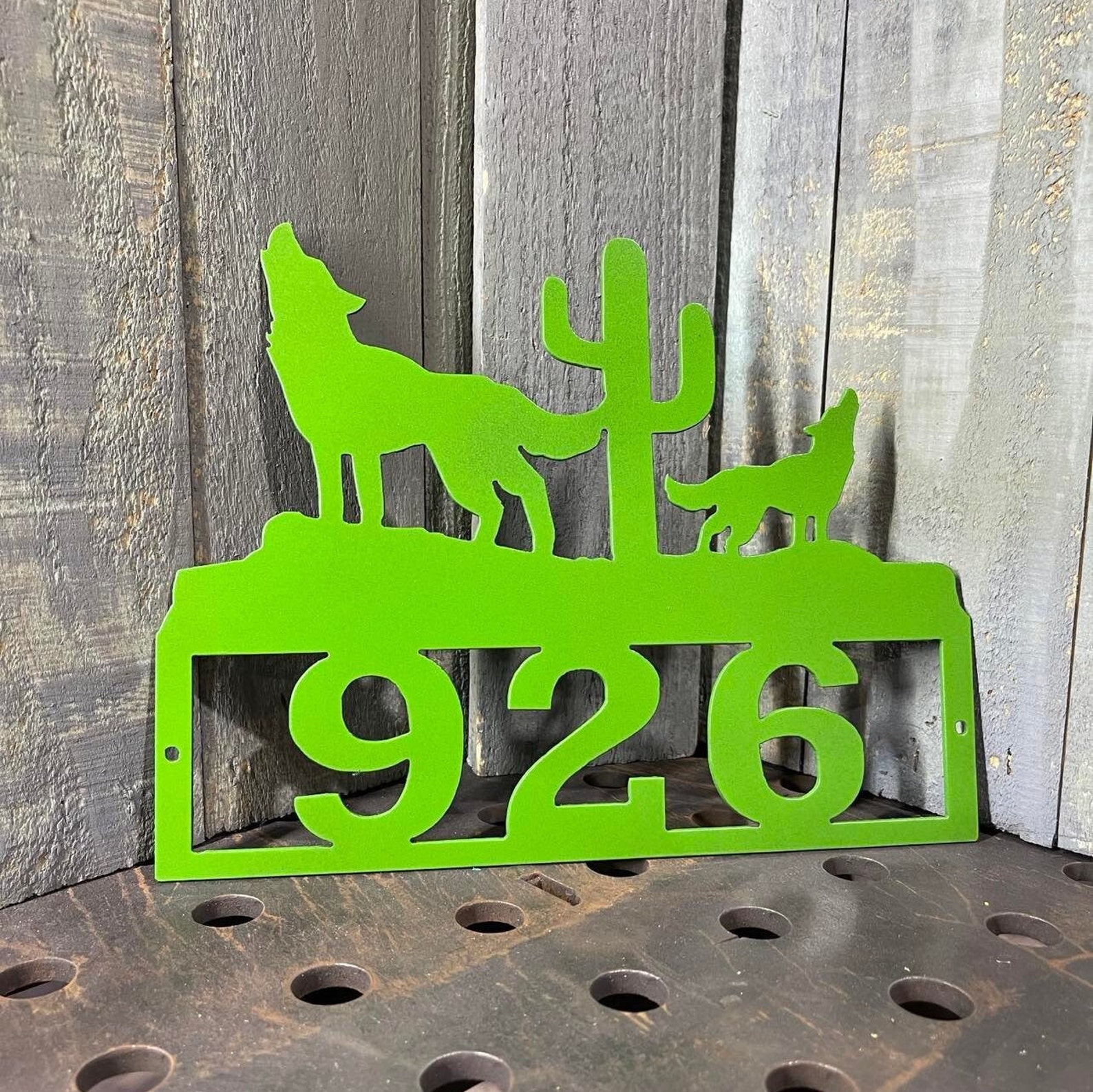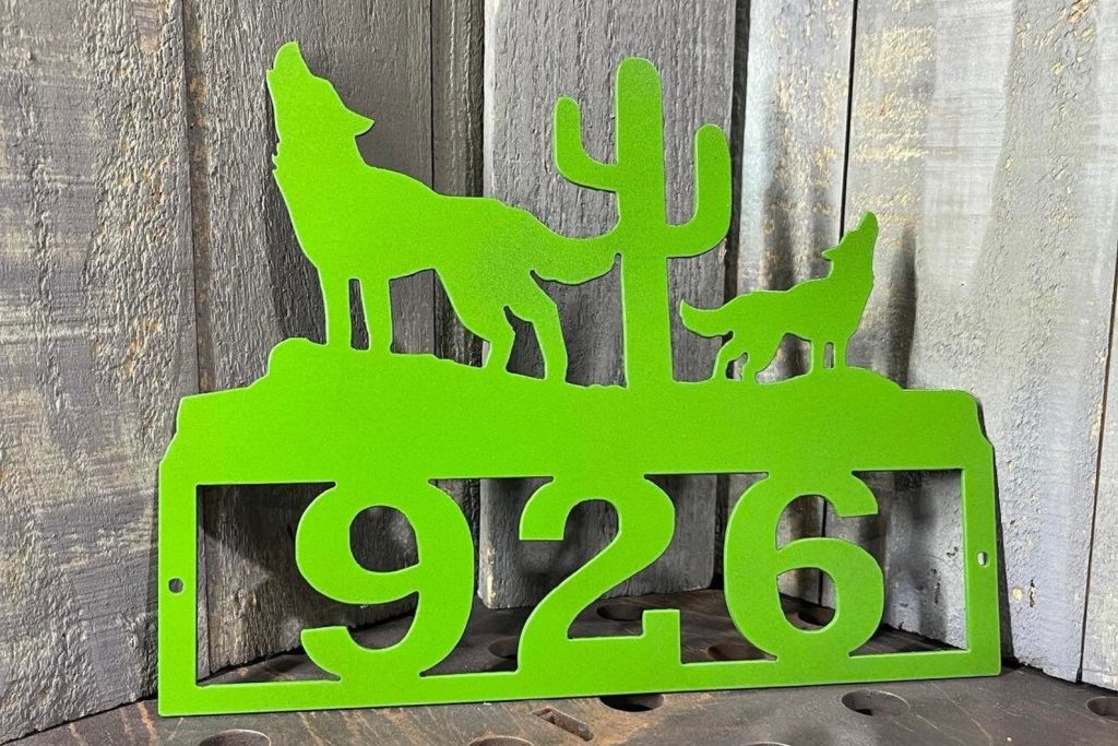 Be the first to review “Metal Wolf & Cactus Southwestern Address Sign”
