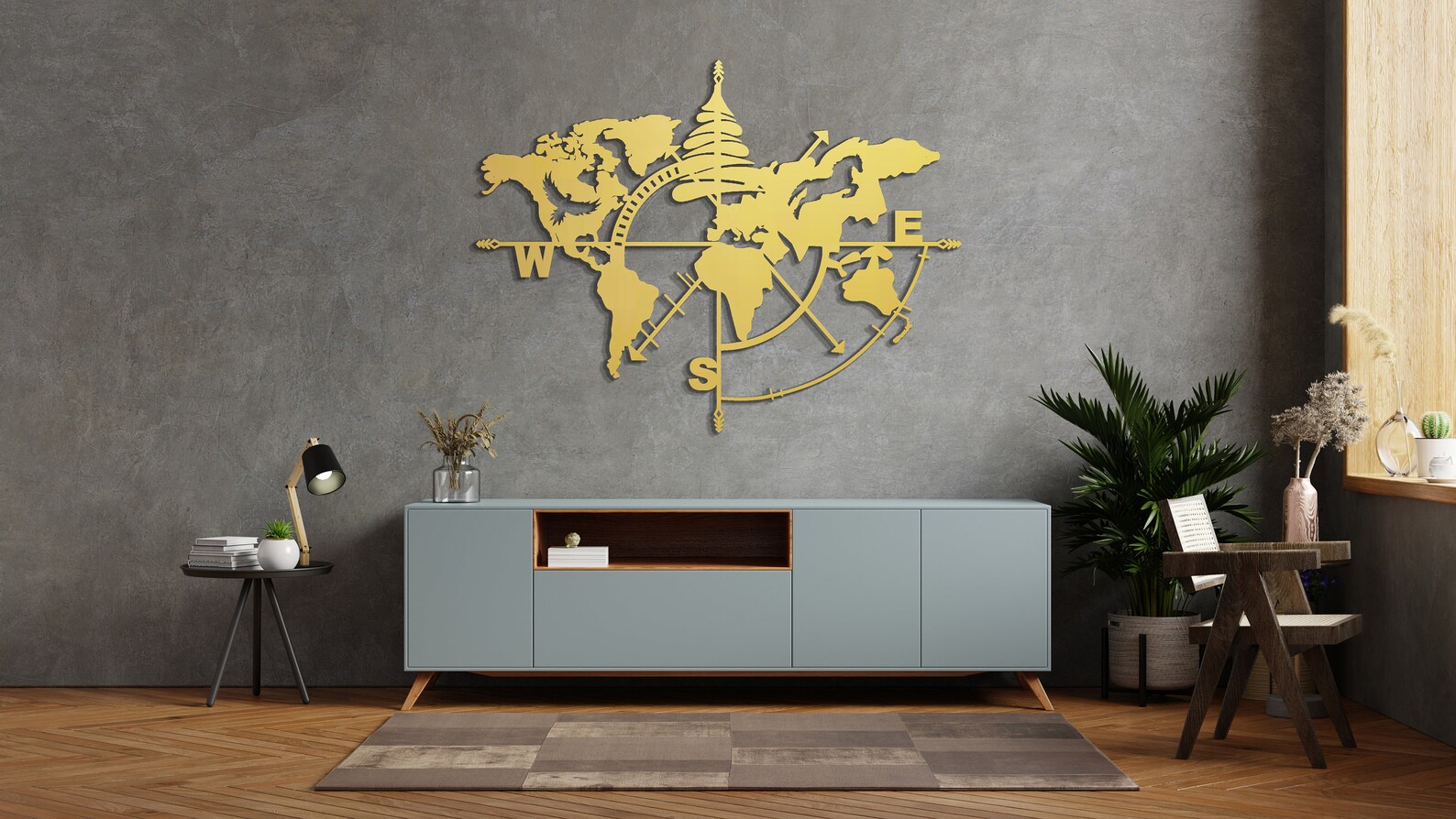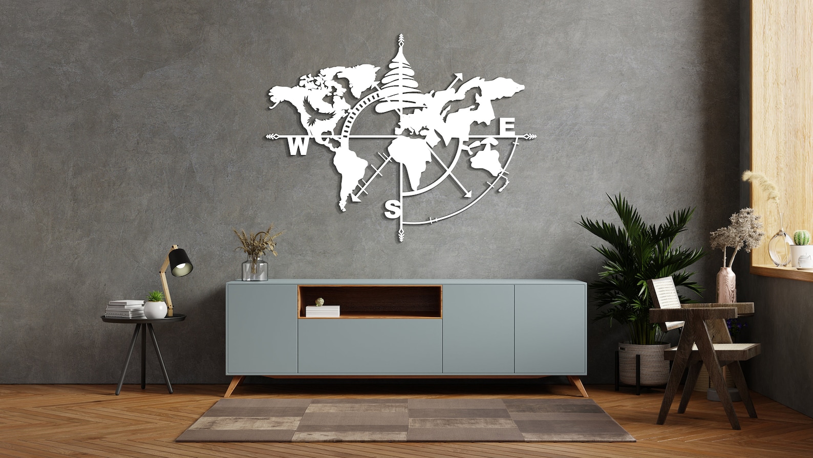 Be the first to review “Metal World Map with Tree and Compass Design”