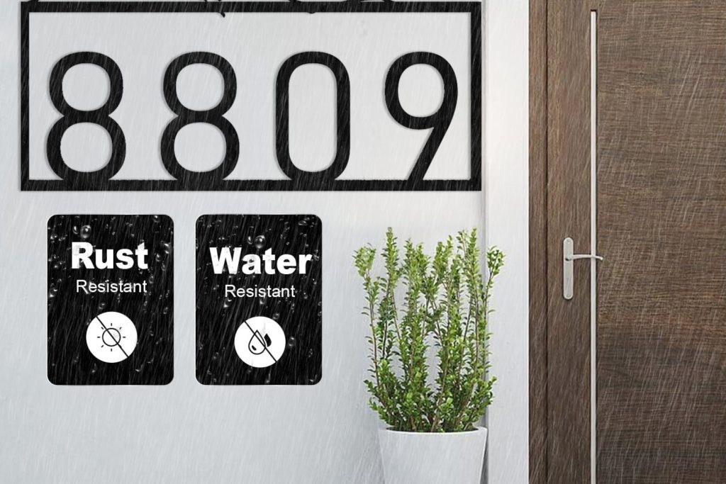 These personalized house numbers are made of high-quality stainless steel and have a satin black powder coat finish. They are waterproof, rustproof, and weather resistant, making them suitable for indoor and outdoor use. The numbers are easy to install and come with all necessary hardware and instructions. They are also UV resistant, so they will not fade or chip over time. These house numbers are perfect for adding a touch of elegance to your home9;s exterior. They are also a great way to increase your home9;s curb appeal and make it easier for visitors and delivery drivers to find your address. 12"-12"width x 3"height, 14"-14"width x 3 1/2"height, 16"-16"width x 4"height, 18"-18"width x 4 1/2"height, 20"-20"width x 5"height, 24"-24"width x 6"height, 30"-30"width x 7 1/2"height, 36"-36"width x 9"height