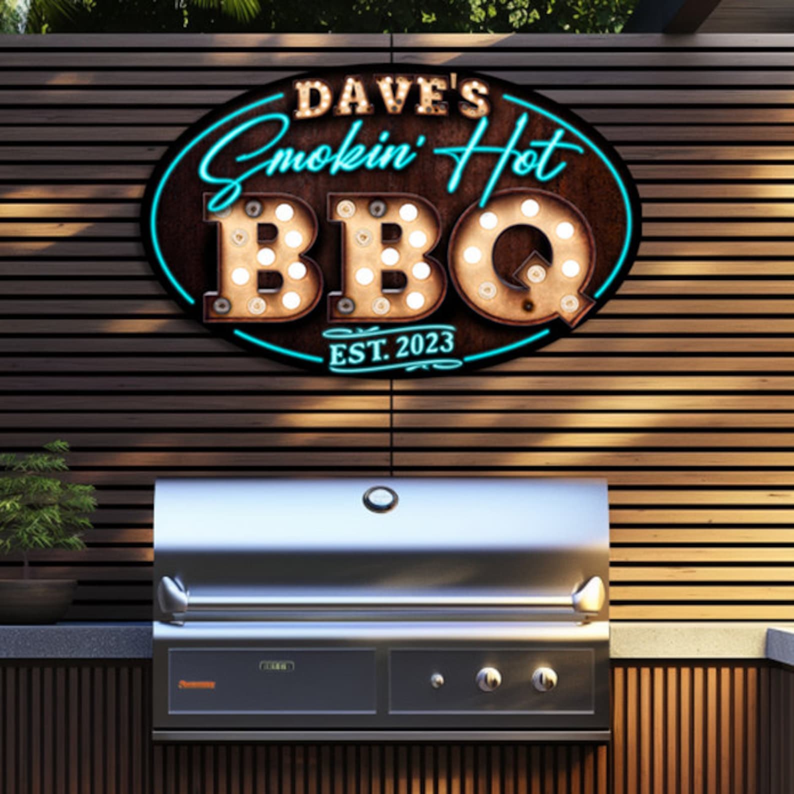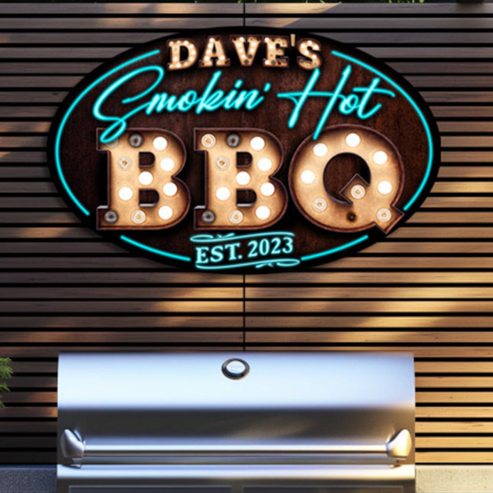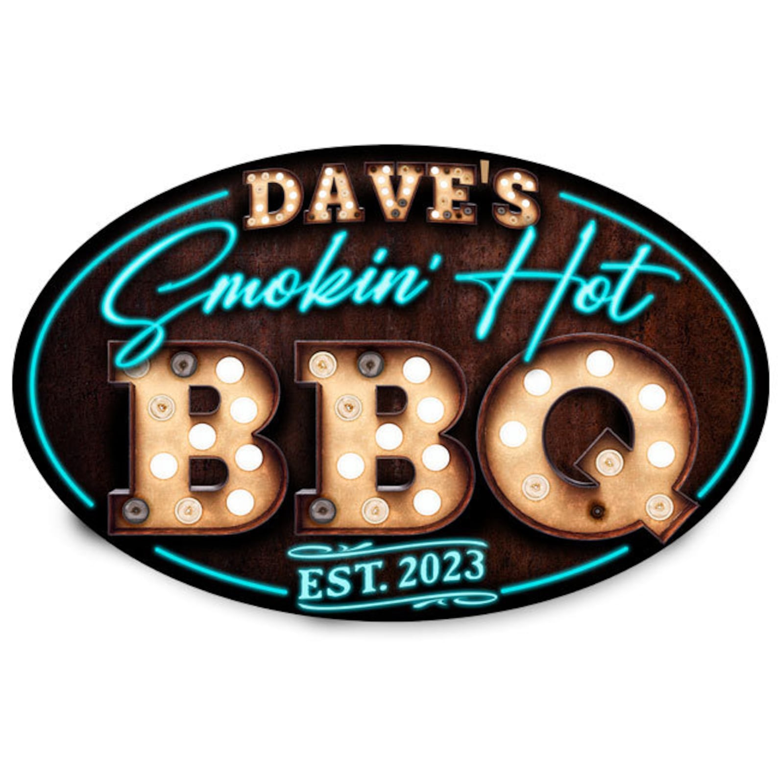 Welcome your friends to the backyard with a Bar and Grill sign! Where a cozy and welcoming atmosphere is just a step away, courtesy of our Oval Metal BBQ Signs. We9;ve poured our heart into crafting this charming sign, making sure every detail is perfect to turn your porch into a warm haven of hospitality. Just imagine this elegant oval metal sign gracing your outdoor kitchen decor a touch of grace that instantly brings a welcoming vibe.