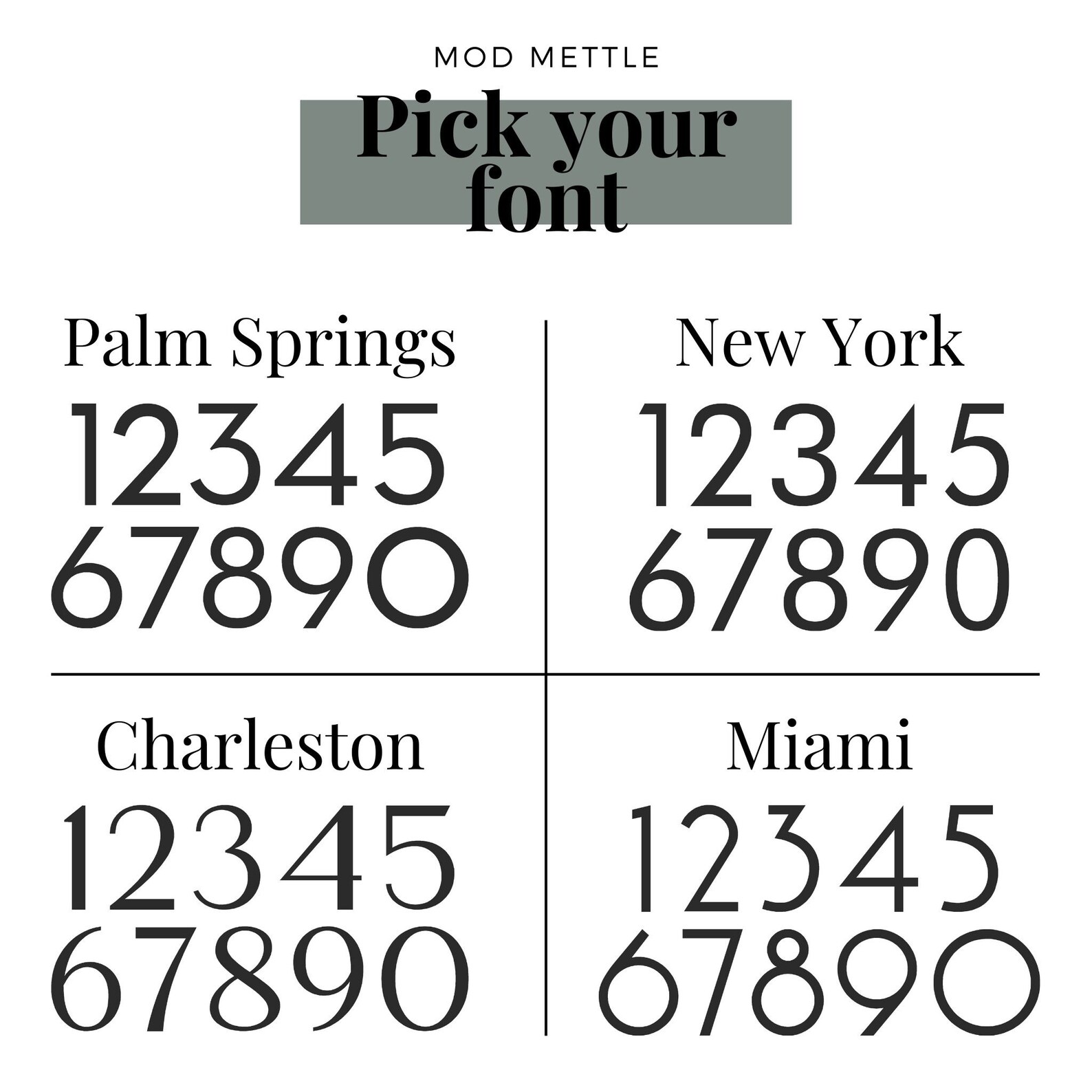 Choose from four available fonts: New York, Palm Springs, Miami or Charleston