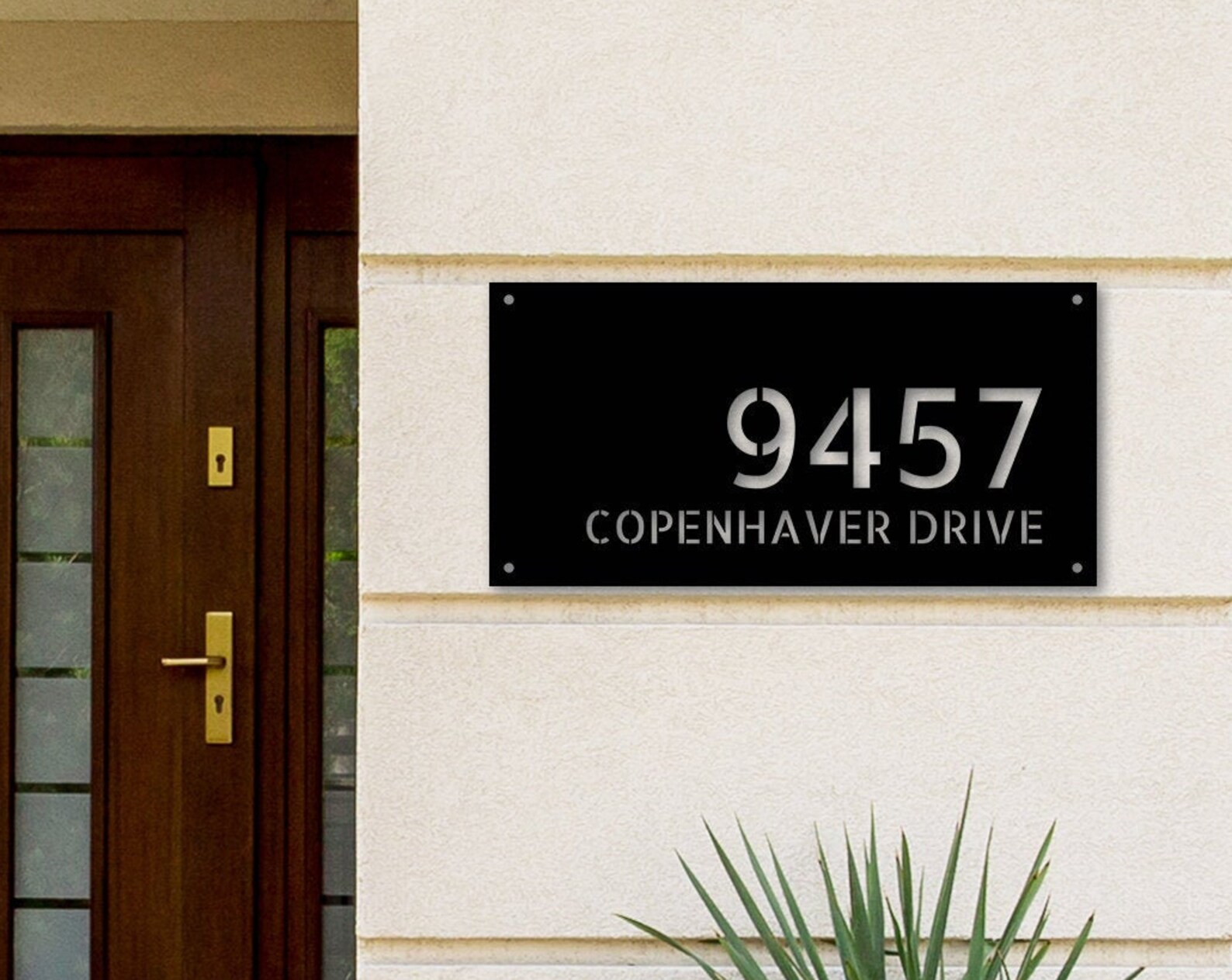 This rectangular Custom Modern Metal Address Plaque is the PERFECT Engagement or Housewarming GIFT: A truly special and long-lasting way to celebrate the new Mid Century Modern Home with a Custom Address Sign that reflects the Modern Decor with Modern Address Sign Customized with your Personal Address to celebrate any occasion. The uniqueness, style and durable nature of the product underscores the importance of the event and will last for a lifetime.