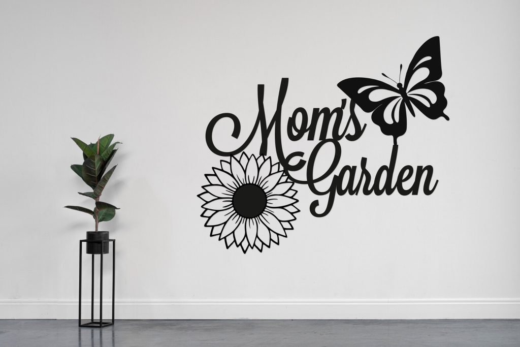Mom Metal Sign – Flower & Butterfly Wall Decor