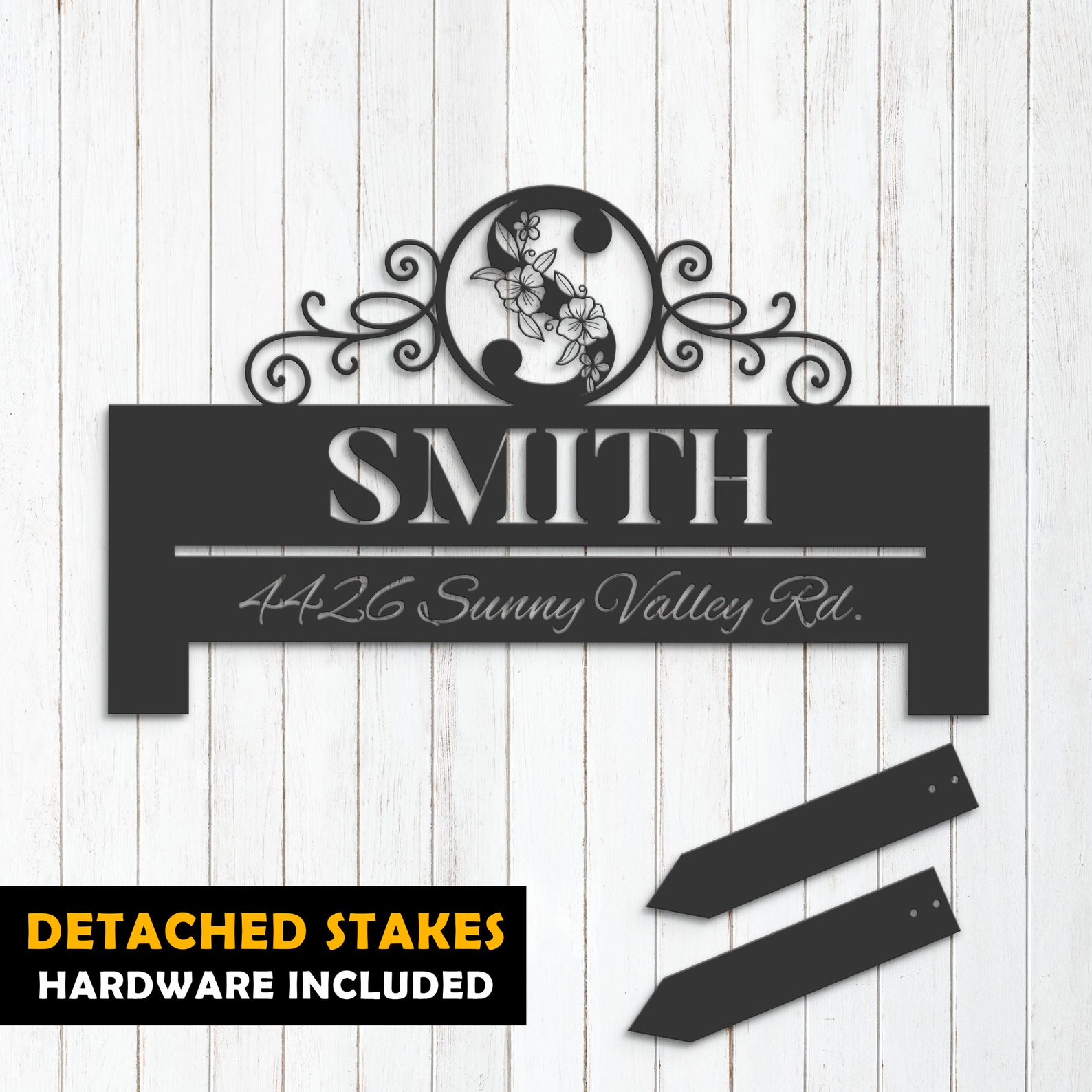 Introducing our custom metal address sign, available in 5 size options and 4 different styles to suit your individual needs. With our address sign, you can make a statement while also ensuring that visitors can easily locate your home or business.