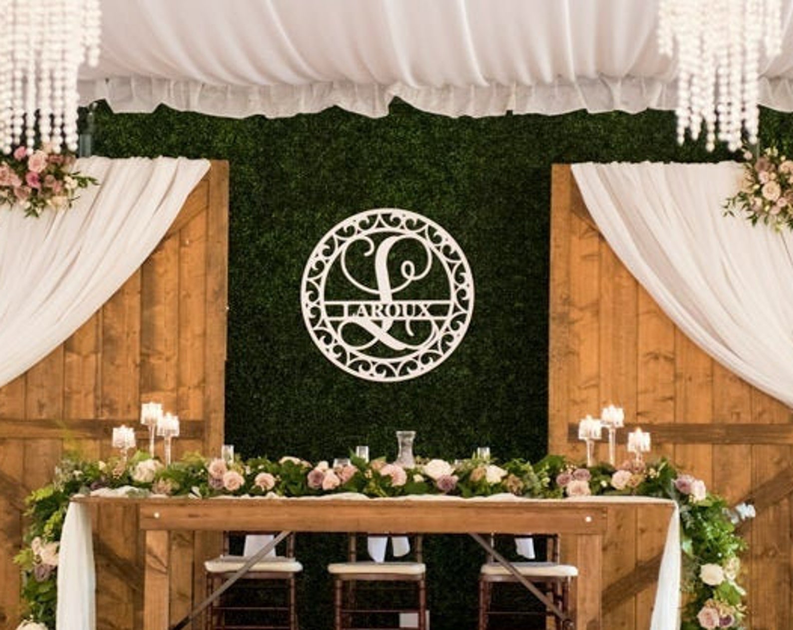 Monogram Family Name Sign with Scroll Border, Metal