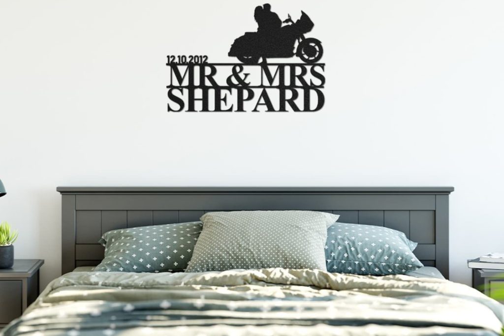 Sweet Ride9;s laser-cut Happily Married Biker Couple Personalized Wall Art brings together your most significantly meaningful bond into a design that truly speaks from the heart, bringing incredible meaning to any wall it adorns.