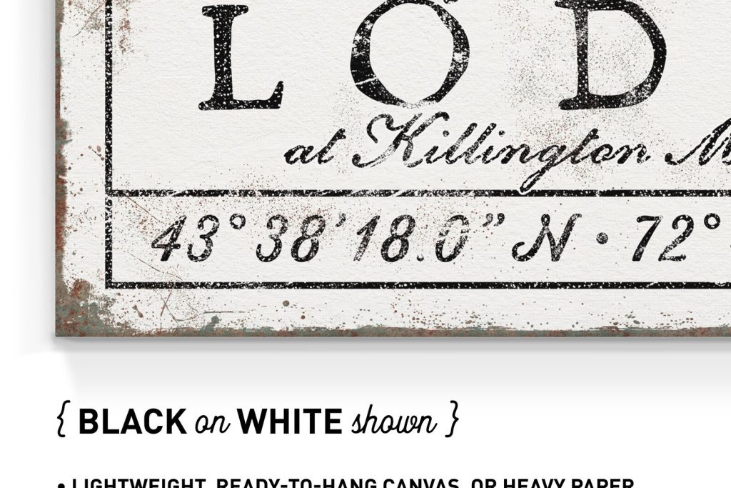 Be the first to review “Mountain LODGE Sign – Latitude & Longitude, Faux Rusty White Metal Farmhouse Decor”