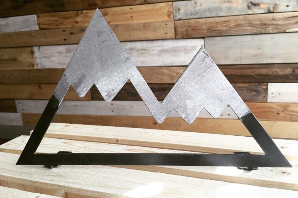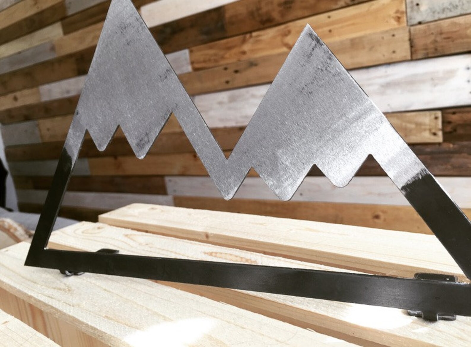 This listing is for one metal mountain range handmade from high quality durable 14 gauge steel and is available in 4 finishes: Raw metal, semi- brushed peaks, painted black or gold.