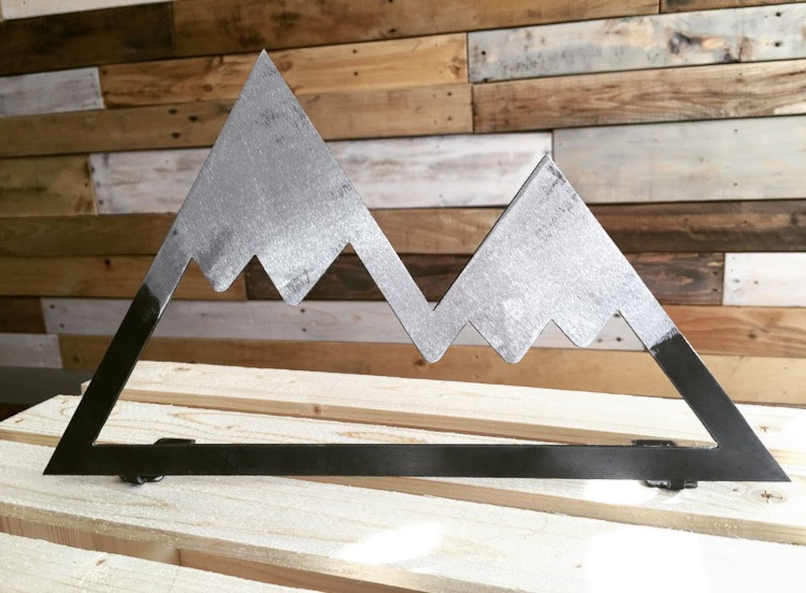 Our beautiful rustic metal mountain decor is the perfect addition your home! The raw metal mountain range art gives a modern yet rustic feel, making it a great addition to any space, especially for cabin decor or man caves.