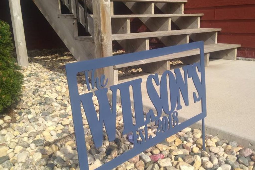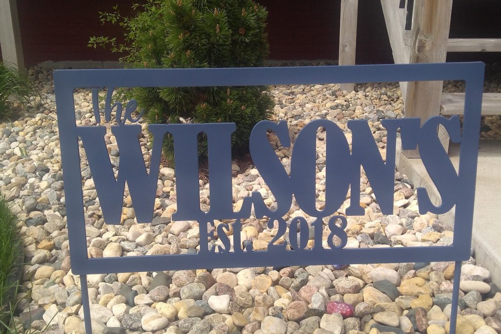 Personalize your front yard with this custom yard sign. This is cut from 10-guage steel and can be personalized with your name, last name, established date, house numbers – whatever you desire! Great gift idea!