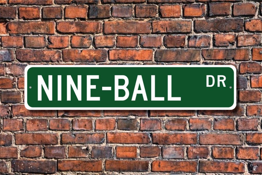 Nine-Ball lovers check out this awesome street sign! This will make the perfect piece for any Nine-Ball fan, or maybe you are a Nine-Ball lover looking for a cool decor piece ! Made of premium aluminum it will stand the test of time. This sign will look great in any room, home den, cave, or office ! Get this sign for your favorite Nine-Ball aficionado !