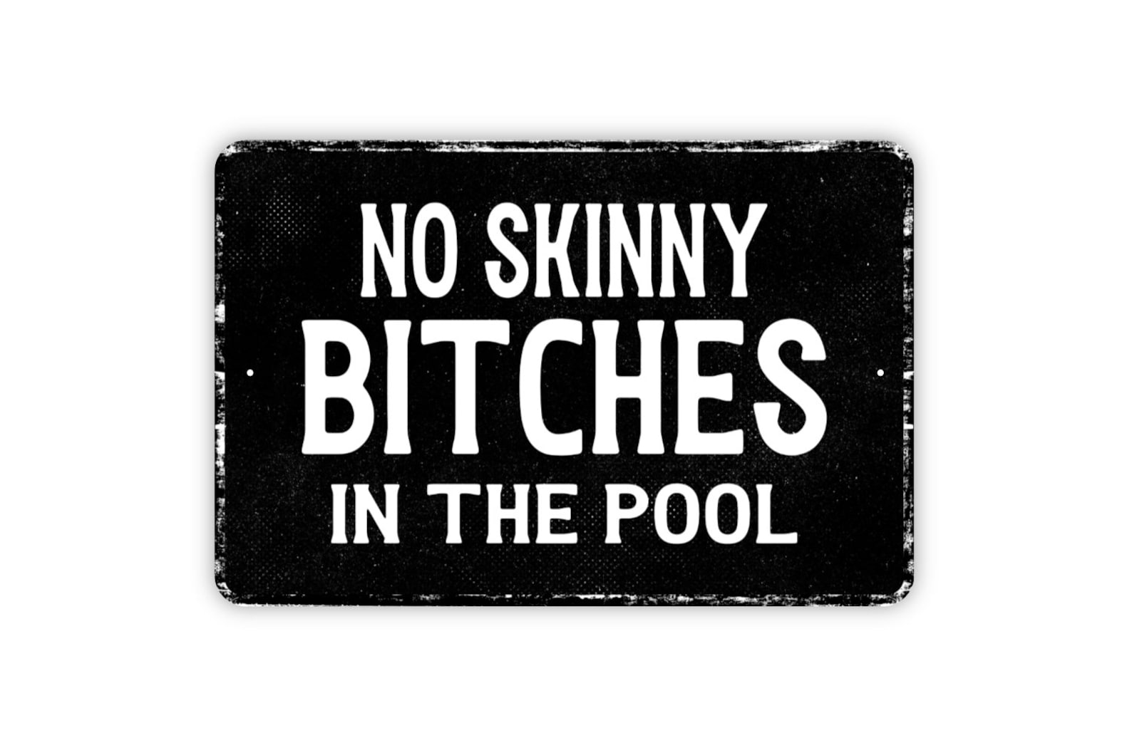 No Skinny Bitches in the Pool Sign: Funny Swim Metal Sign