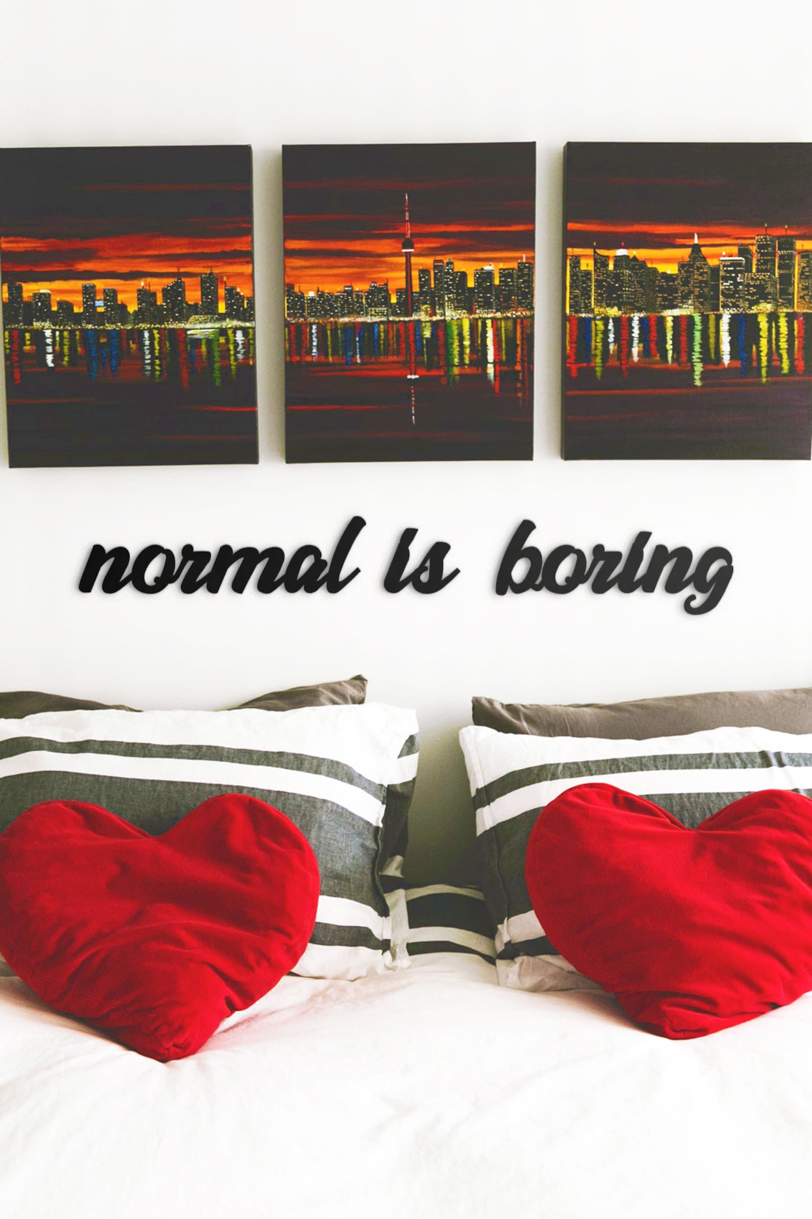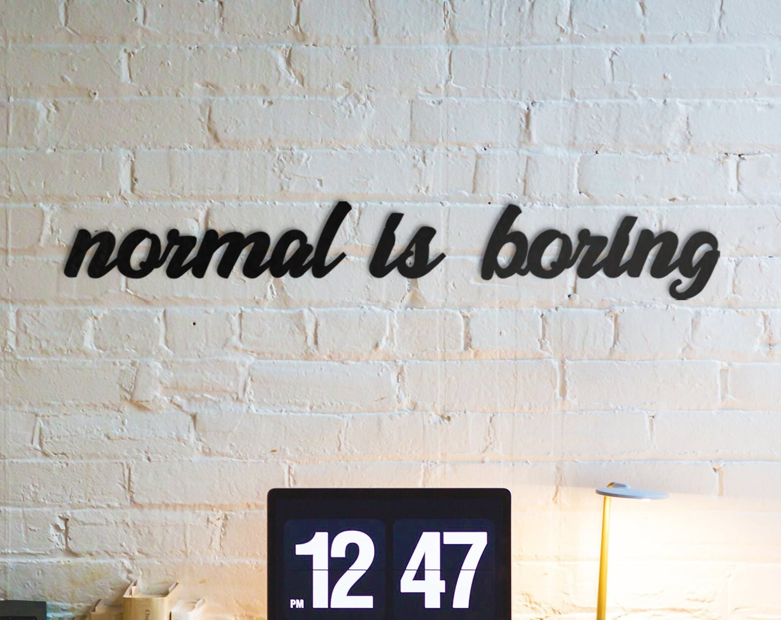 Normal is Boring Words has different size options. It will add a fun and luxurious look to your home. Modern Wall Art can be used as Bedroom Wall Decor, Living Room Decor etc. according to your preferences. Can be used as. It is produced using DKP (ST37). Designs are produced by laser cutting. It is painted with electrostatic paint. This method ensures better quality of the product and prevents it from rusting.