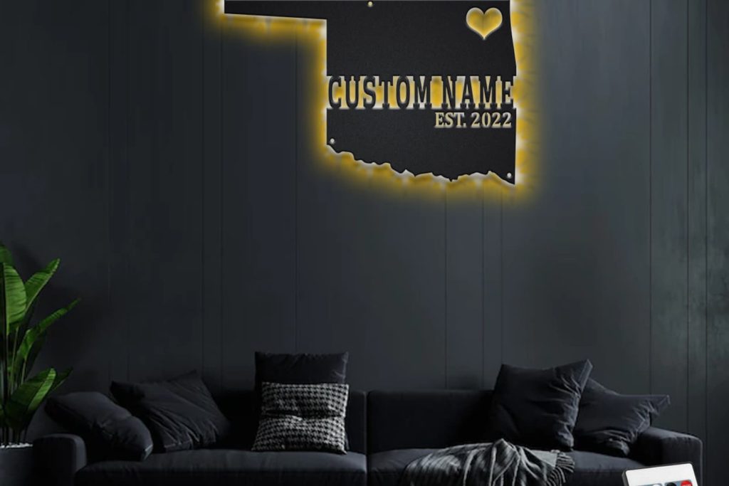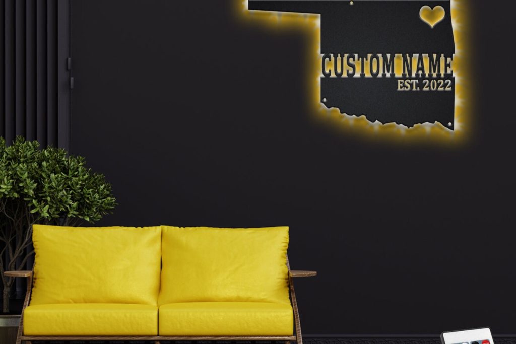 Be the first to review “Oklahoma Map Metal Sign: Custom State Name Sign”