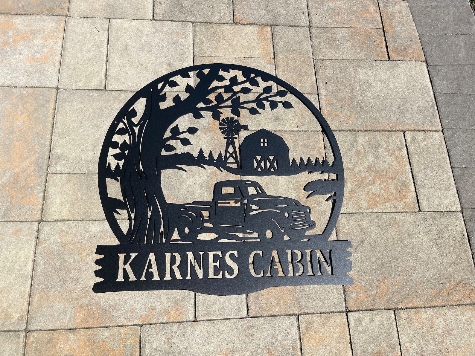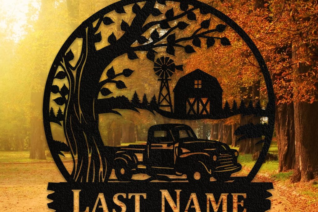 Be the first to review “Old Truck Sunset Sign – Personal Metal Monogram, Gift”