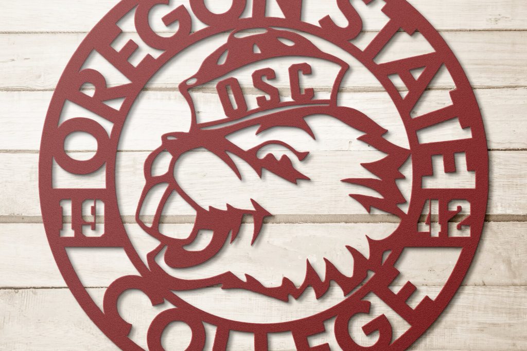 Be the first to review “Oregon State College Metal Sign, 1942”
