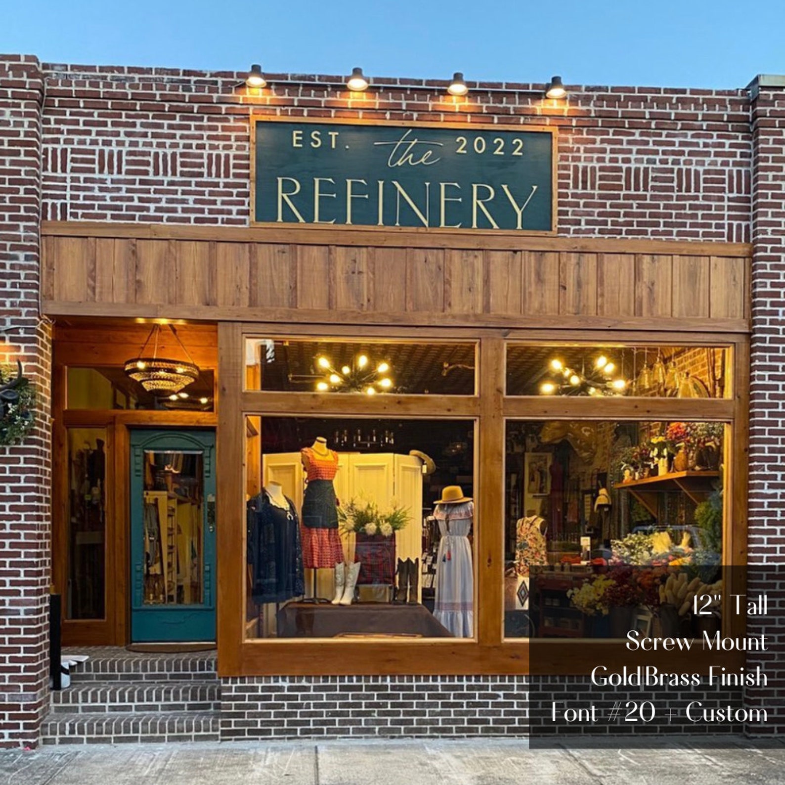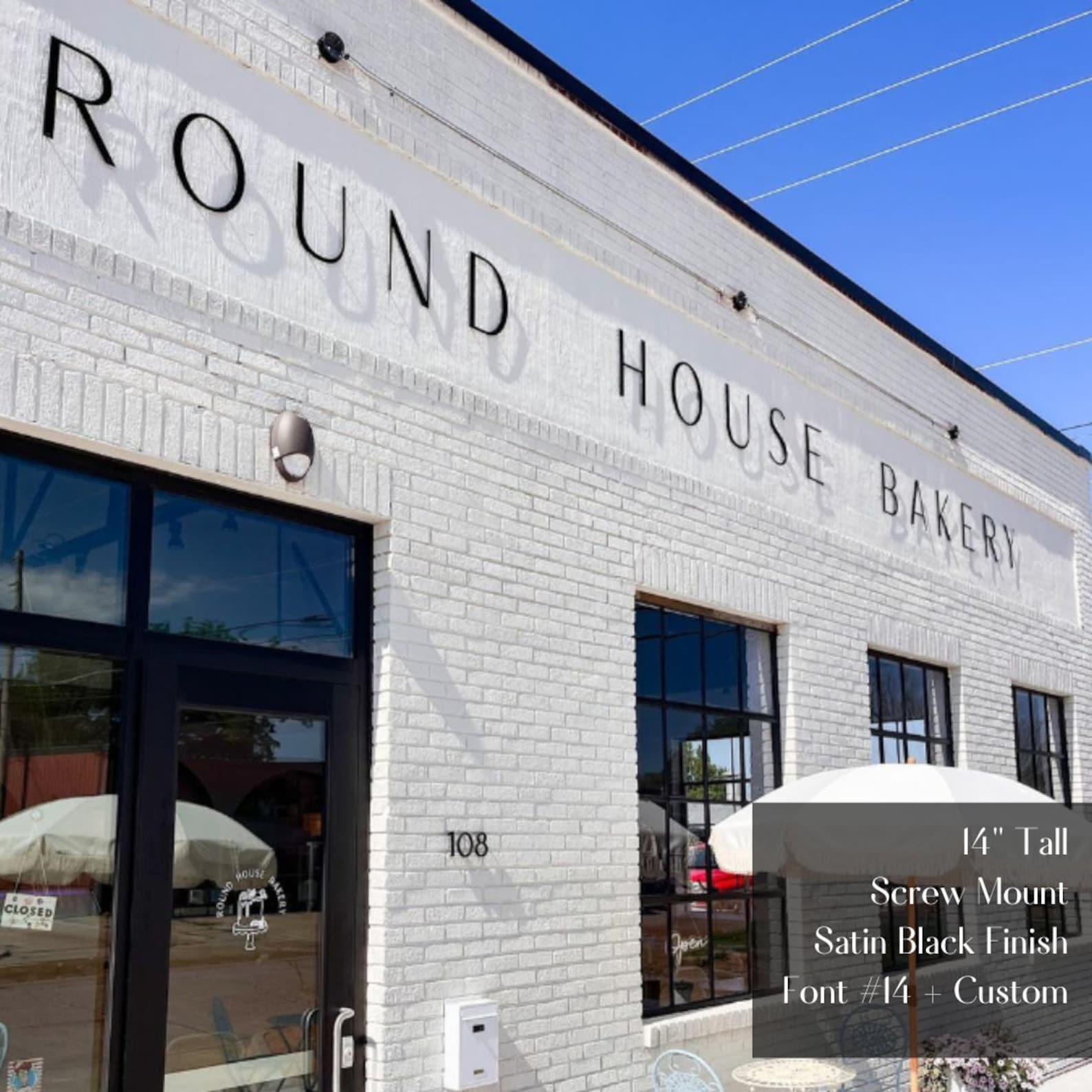 These 12" tall metal letters are made out of 1/8" thick steel. We offer a variety of fonts or we can use your own custom font. Our large exterior grade letters are perfect for boutiques, event venues, bakeries, salons, breweries, offices, neighborhood signs, and more.