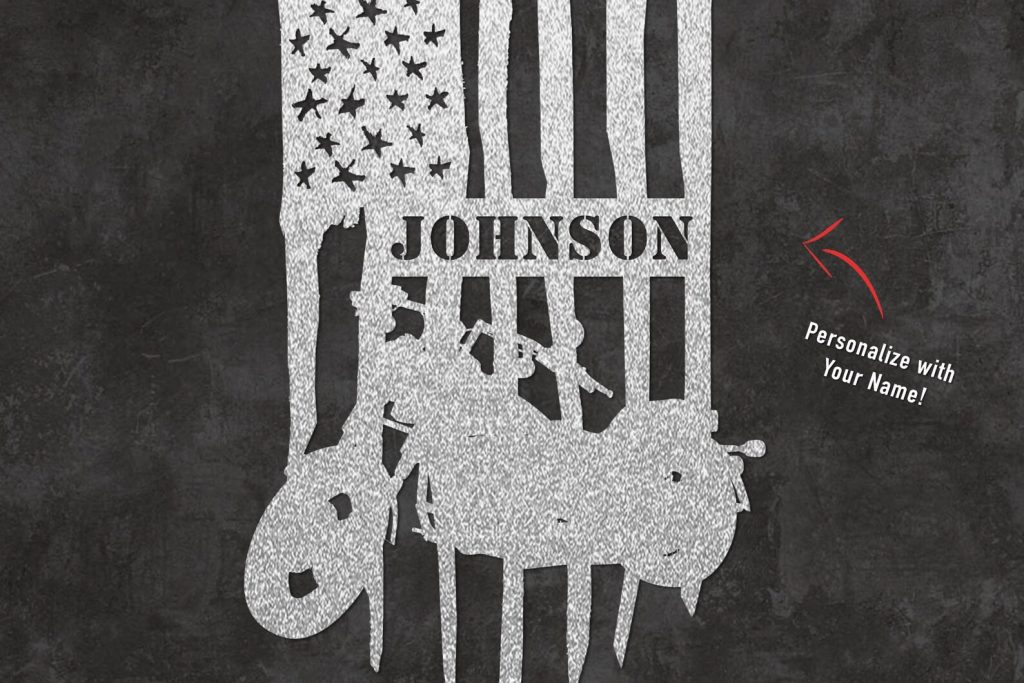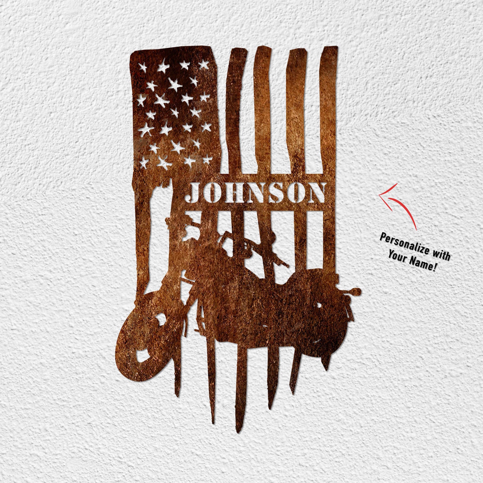 Biker Sign Metal Wall Art To Be PERSONALIZED – Patriot Flag With Family Name