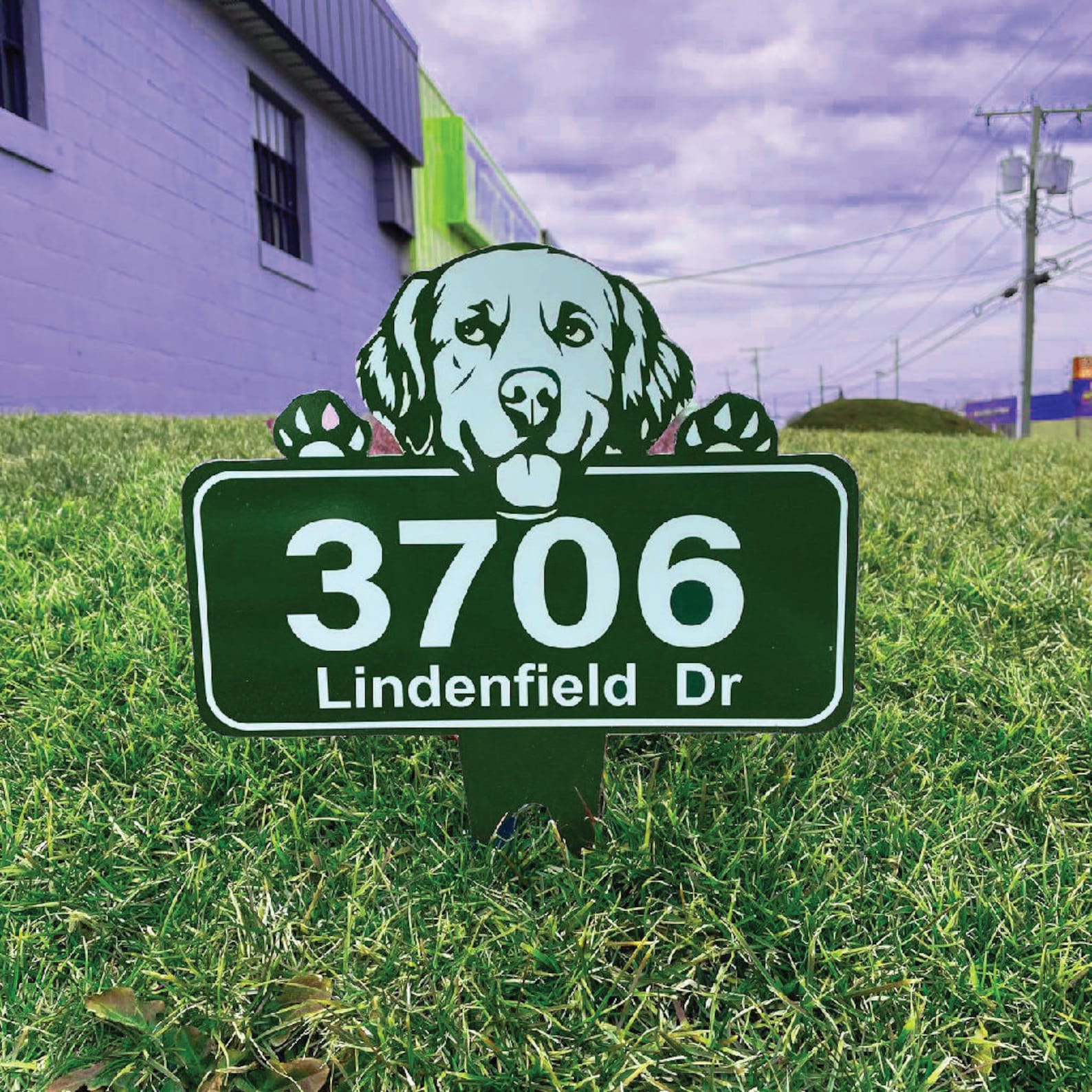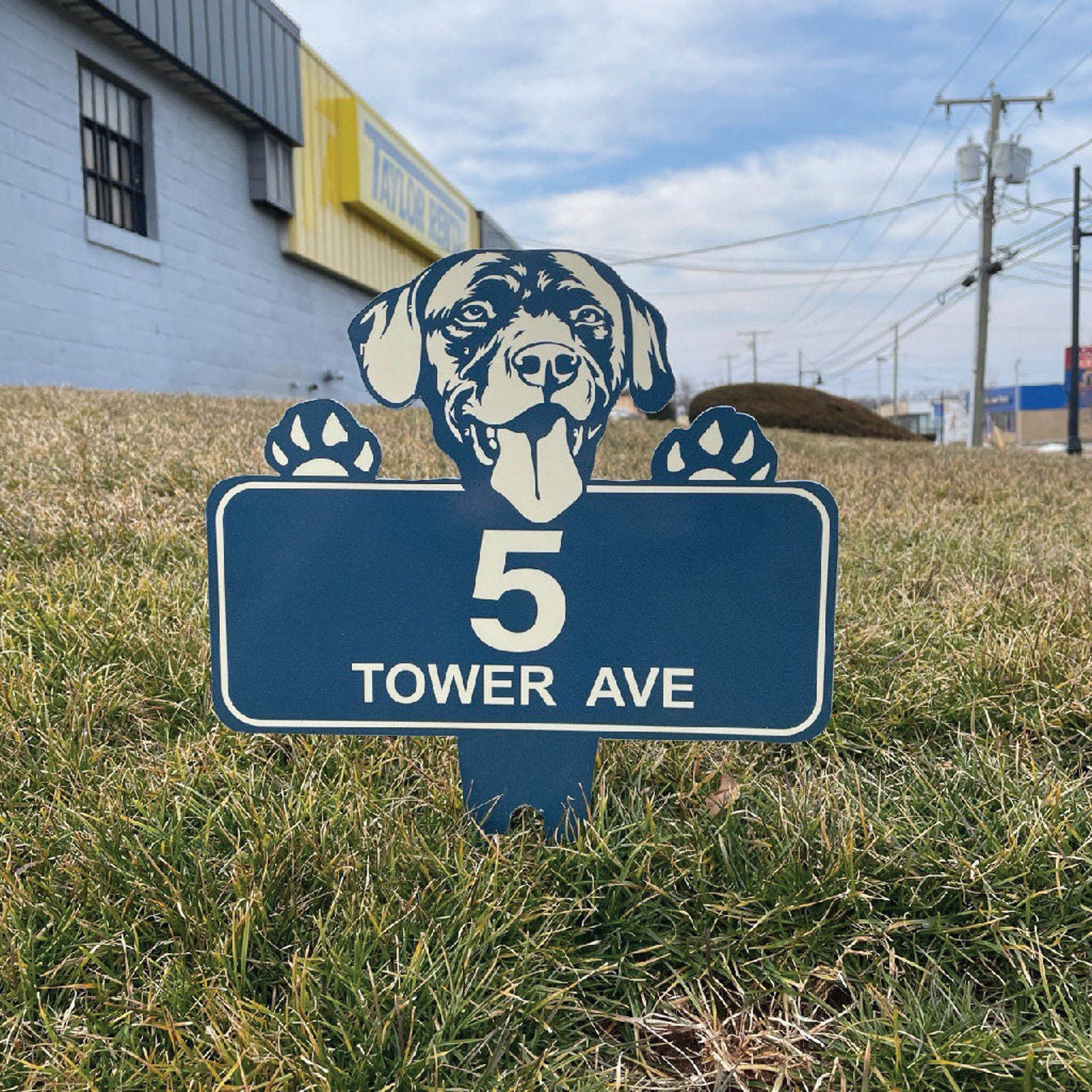 Introducing our charming dog-shaped address signs, crafted to add a touch of whimsy and personality to your homes exterior. Made from durable materials and mounted on sturdy steaks, these signs are not only functional but also delightful decorative pieces. Choose from a variety of breeds and styles to perfectly complement your homes aesthetic. Let your furry friend greet guests and passersby while proudly displaying your address in style.