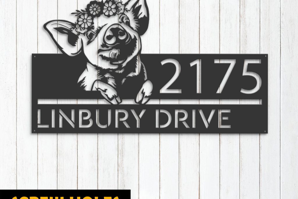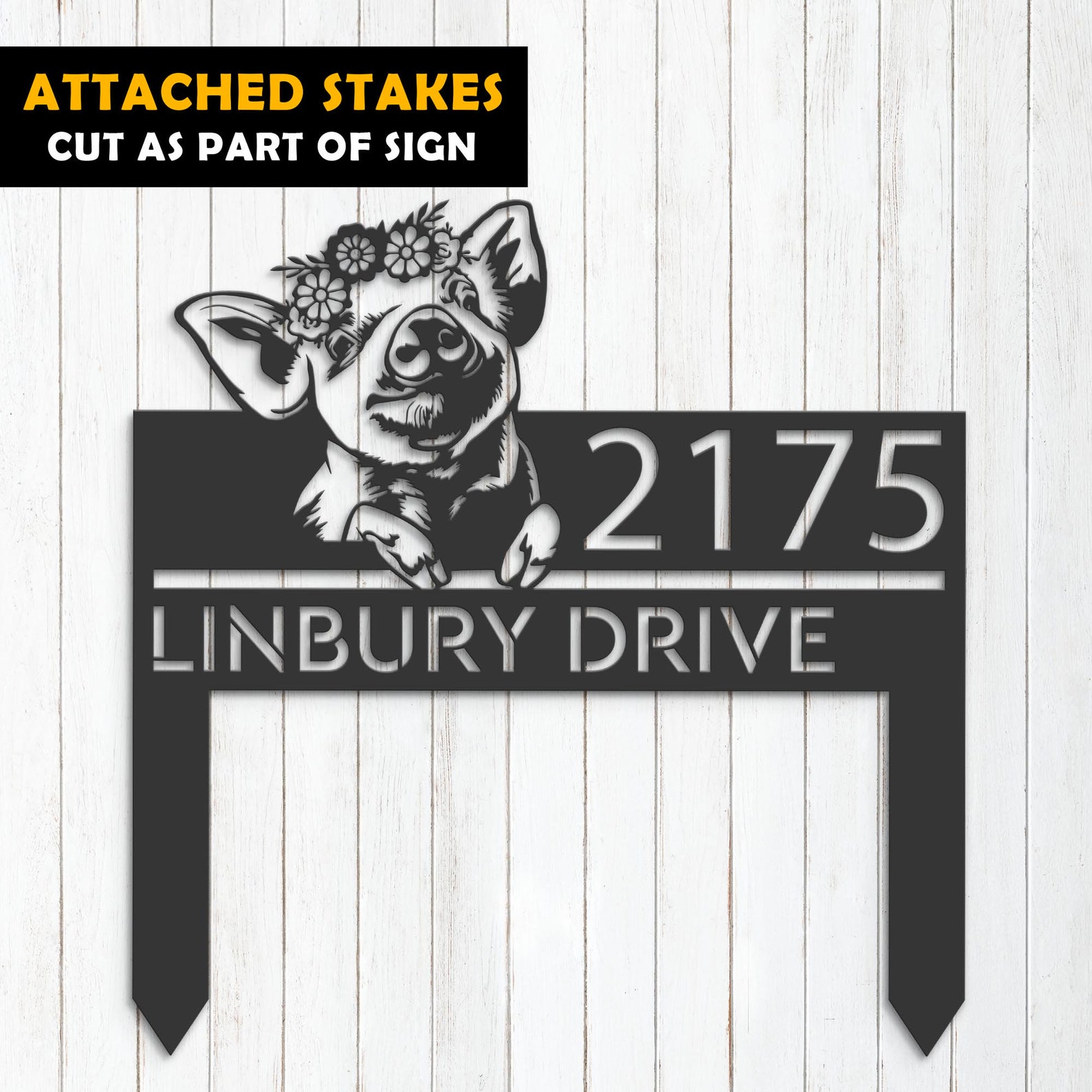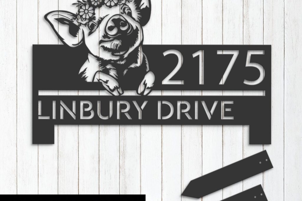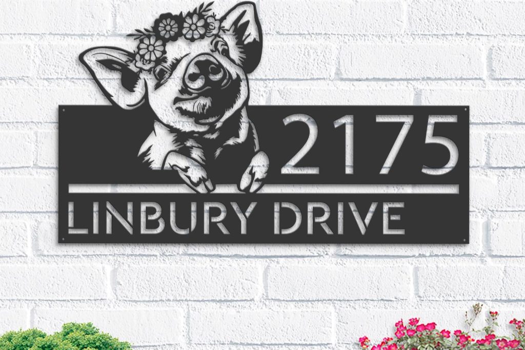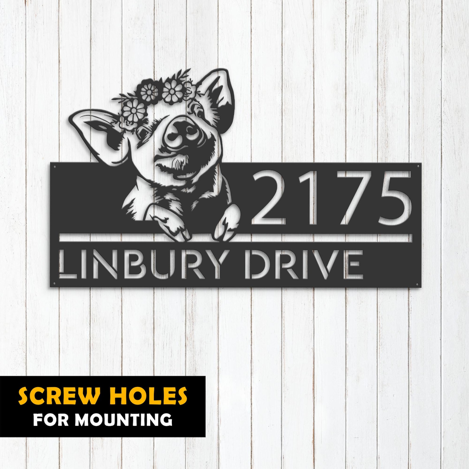 Be the first to review “Peeking Pig Farmhouse Metal Address Sign”