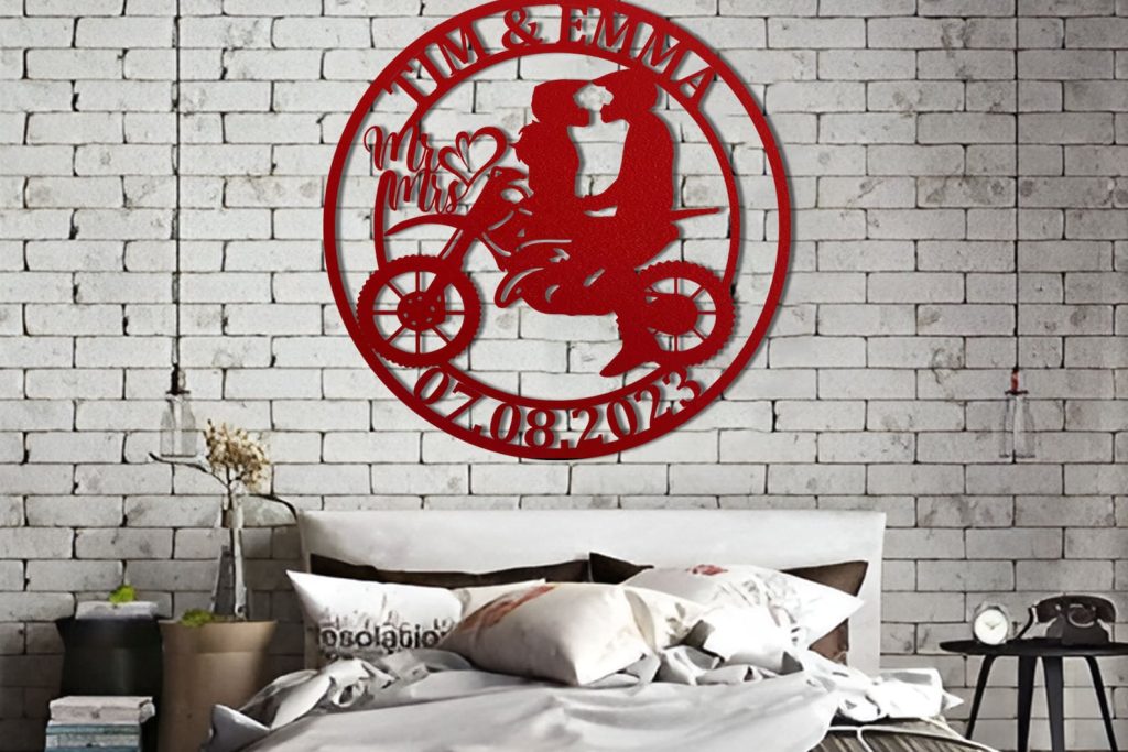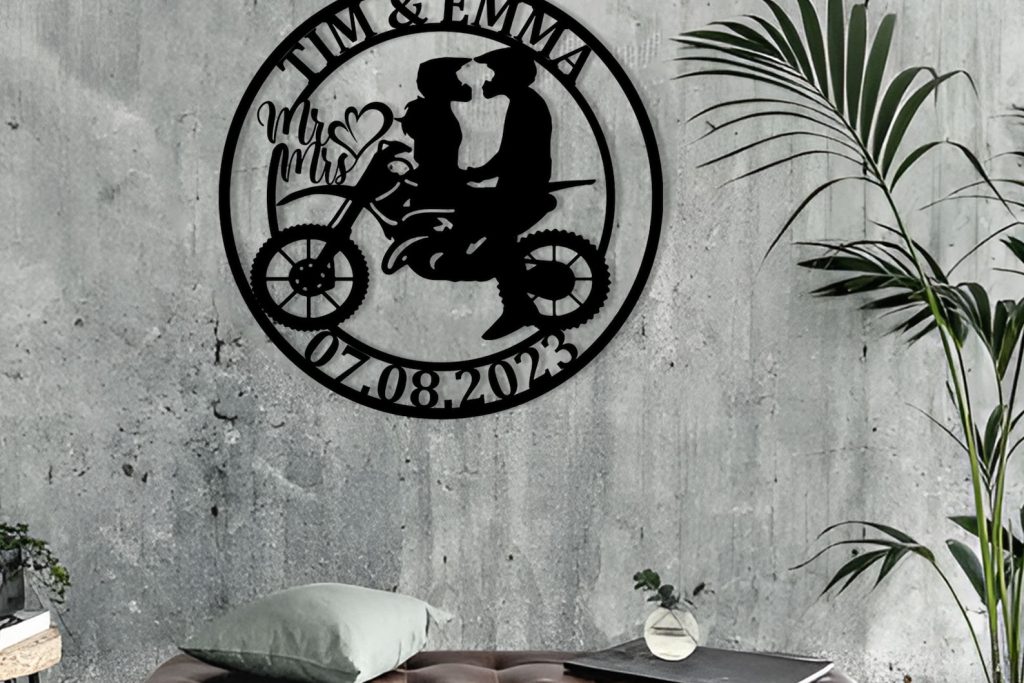 Personalize Wedding Gift Motorcycle,Biker Couple Metal Wall Art Wedding,Sign for Couple,Anniversary Gift,Biker Couple Gift,Motorcycle Metal Sign