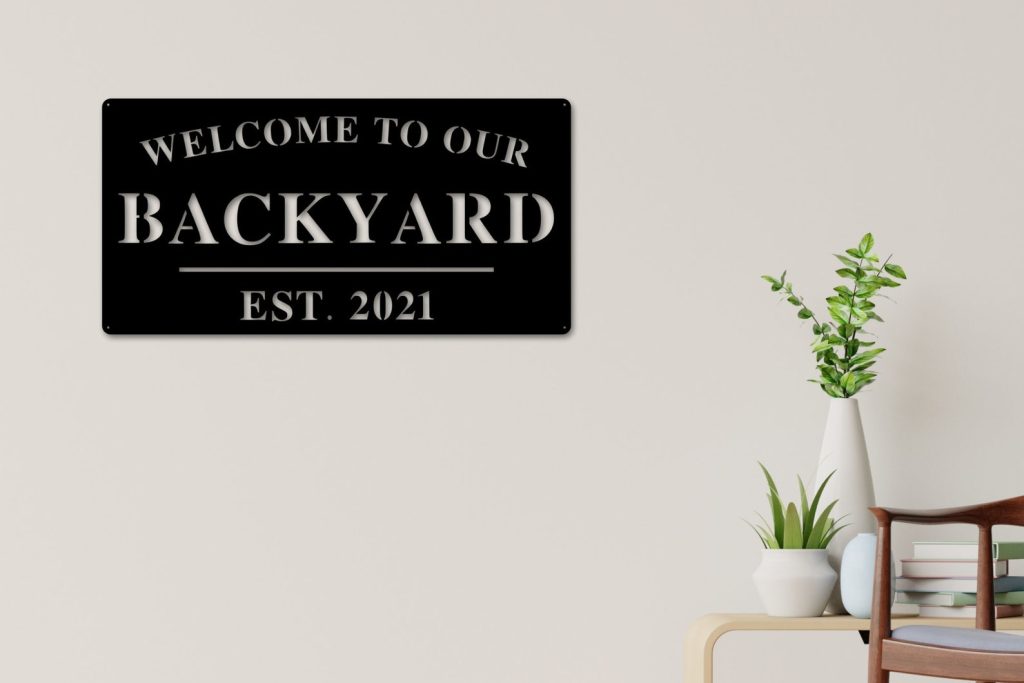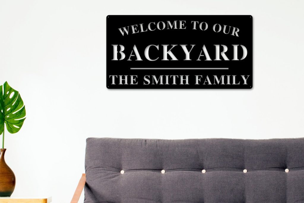 Farmhouse Patio Signs Personalized Backyard Signs Porch Decor Custom Name Sign for Patio, Welcome To Our Backyard Sign | Wood Engraved Bar & Grill Sign | Fire Pit Sign, Family Backyard Bar Grill Metal Sign, Poolside Patio Sign, Backyard Sign, Outdoor Pool Decor, Rectangle Patio Sign, Metal Letter Sign