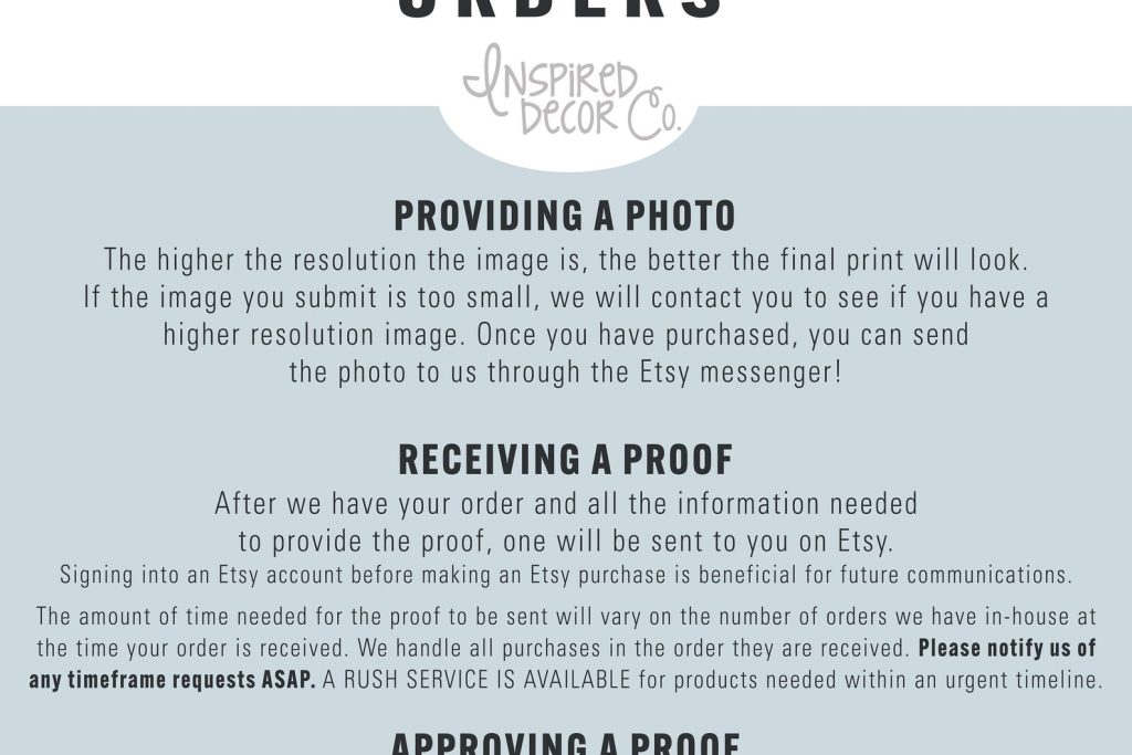 Not every space is built the same, and we want to make sure that we offer a size that will fit yours well! Some of the most popular sizes that we offer are 8, 9, 11, 12, 12, 16, 18, and 2. Our prints can be hung vertically or horizontally; please specify your preference in the personalization section of the order. Our framed canvas signs can sit on their own or be hung from their frame! If you would like to add additional hanging hardware, please see the listing located in the upgrade options section of our store: