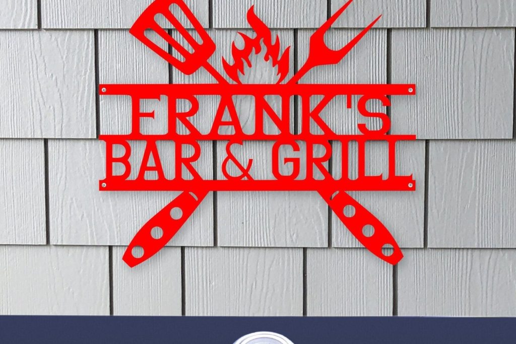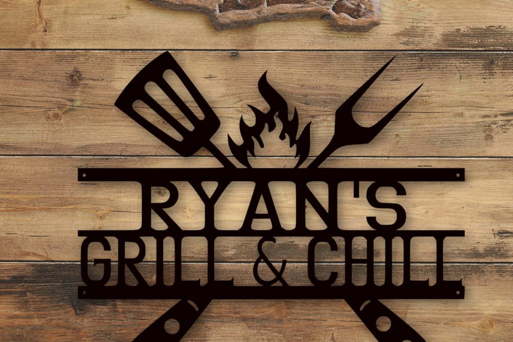 Personalized Bar & Chill Metal Sign | Custom Smoker And Grill Wall Art | Grill and Chill Outdoor Kitchen Sign | Backyard Decor | New Home Gift