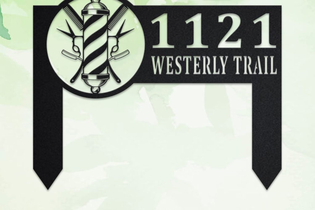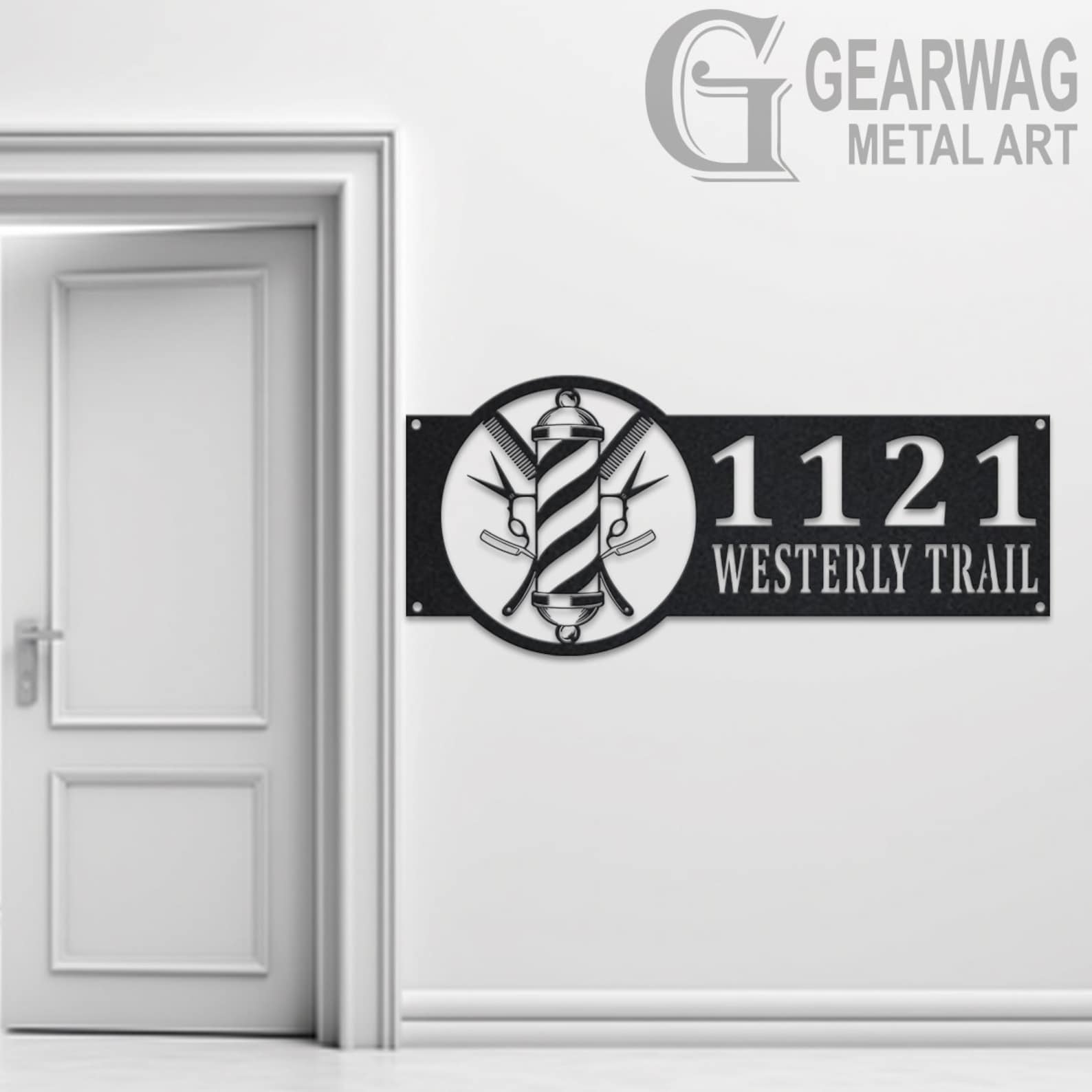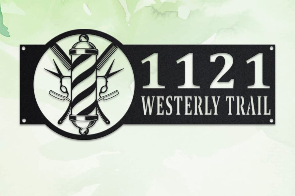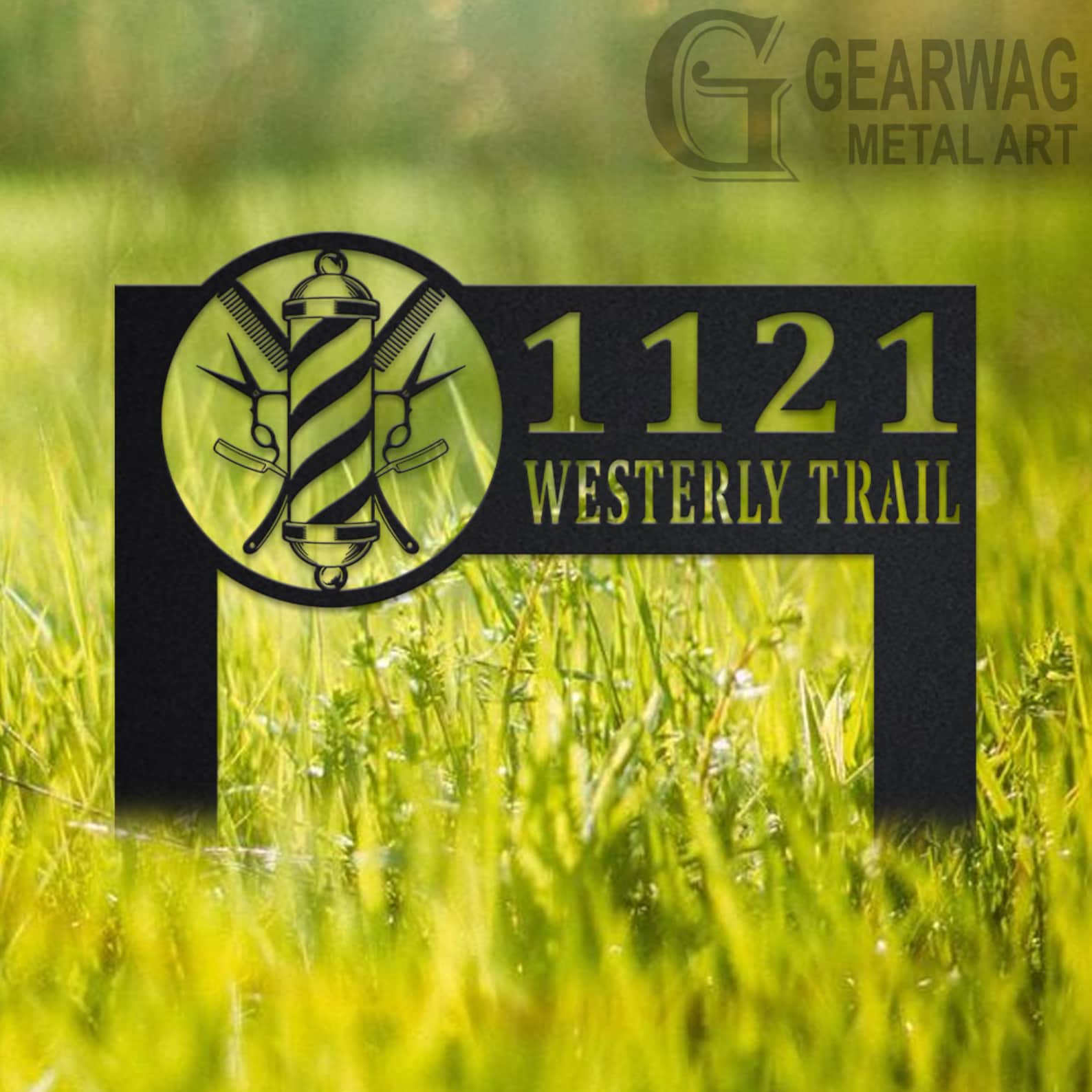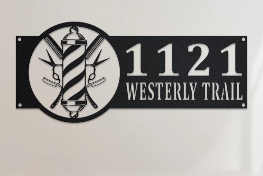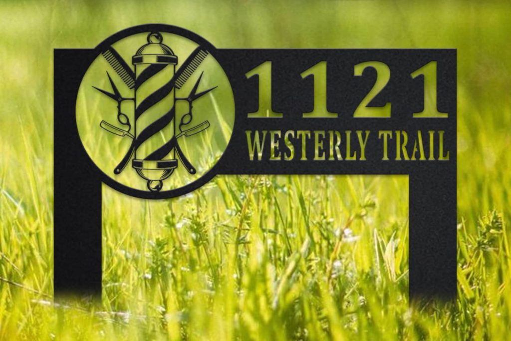 Personalized Barbershop Metal Address Sign – Yard or Door Plaque