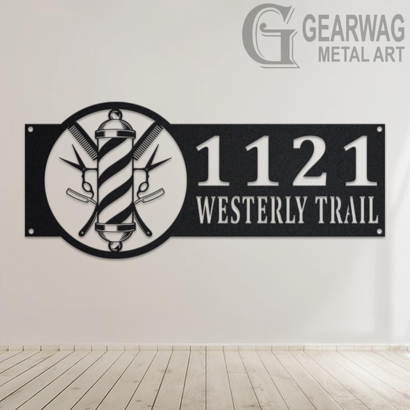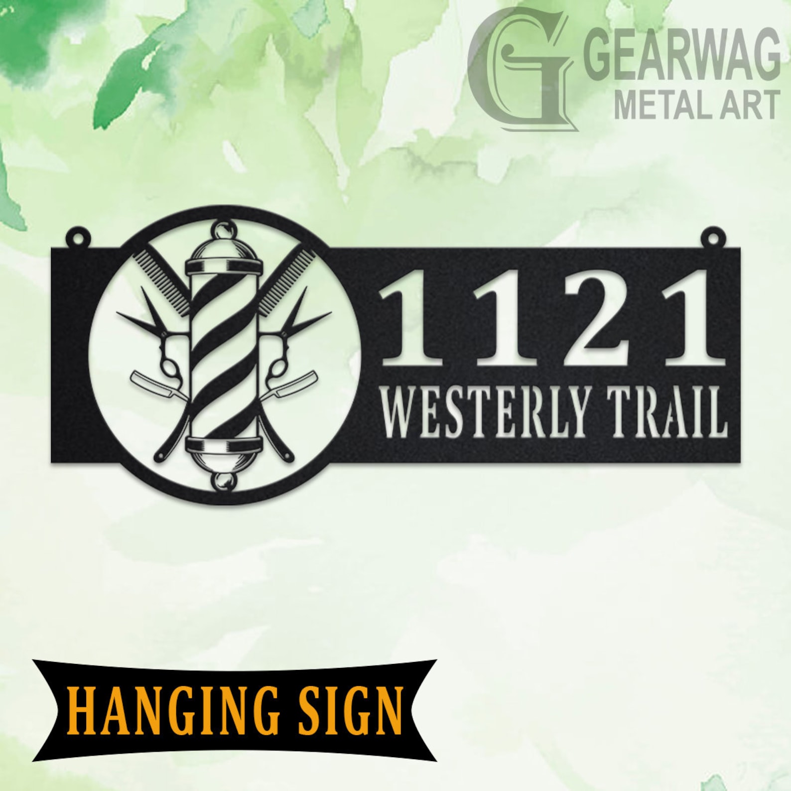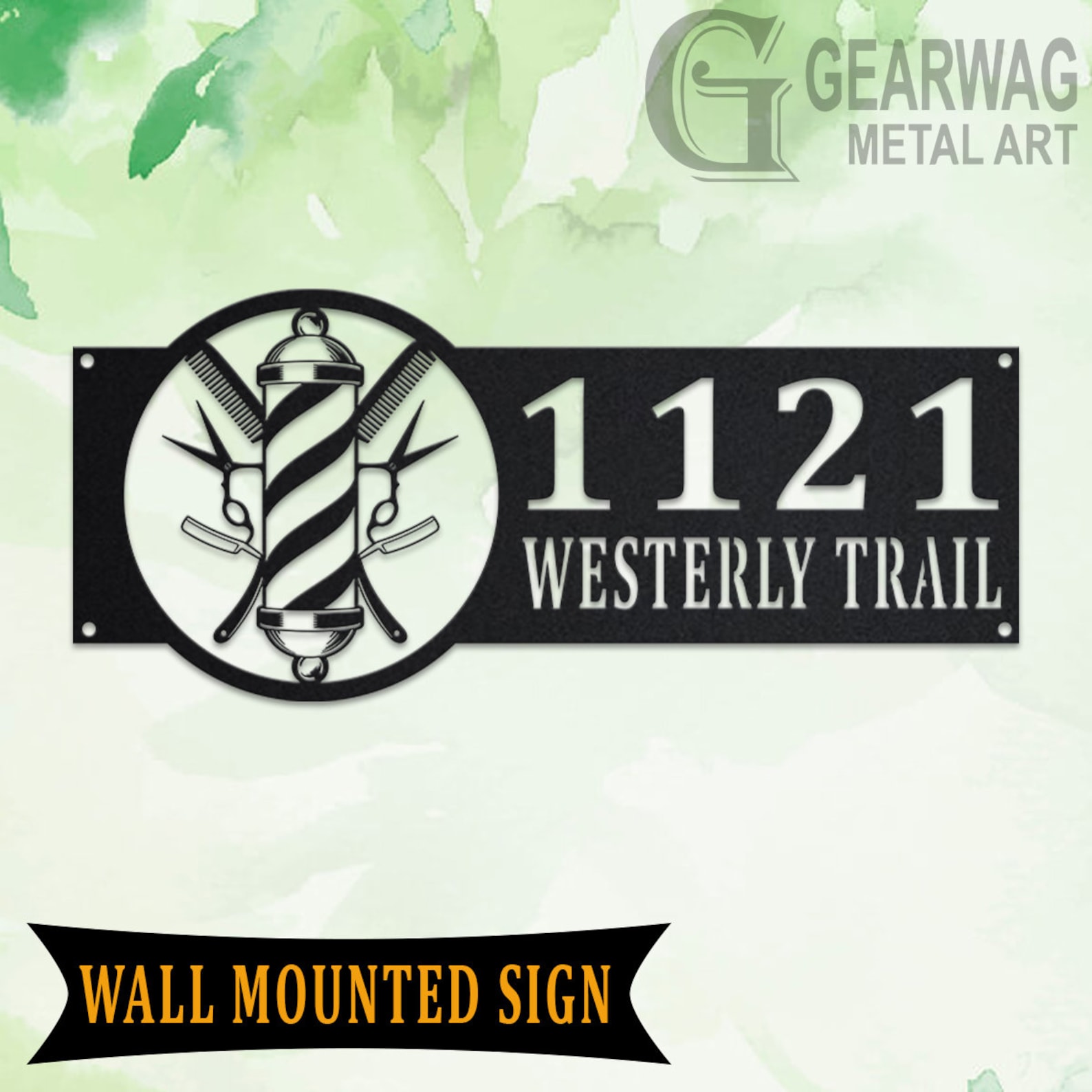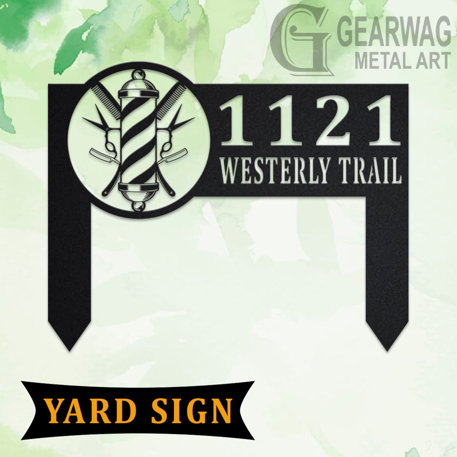 Personalized Barbershop Metal Address Sign – Yard or Door Plaque